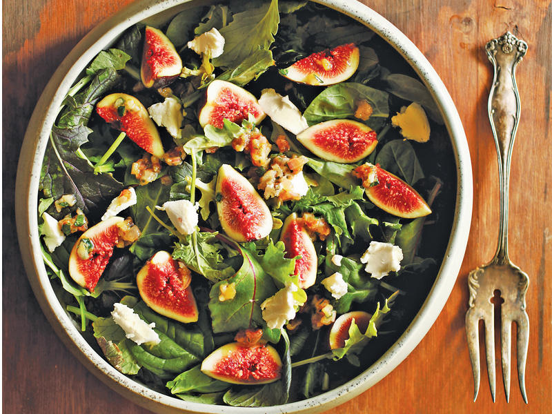 في الوصفة الأصلية، قُدمت حبات التين هذه فوق طبقة من سلطة الخضراوات الخضراء.كيك ديميرارا بالتين