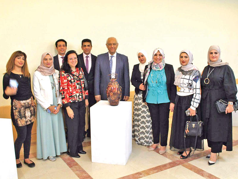 افتتح السفير المصري في الكويت ياسر عاطف، يرافقه الملحق الثقافي المصري د. نبيل بهجت والفنان التشكيلي الكويتي سامي محمد، الليلة قبل الماضية، معرض "توليفات الإناء الخزفي" للفنان د. إبراهيم سلام، المقيم بالكويت، بمقر بالمكتب الثقافي المصري، بحضور نخبة من الفنانين التشكيليين وجمهور الفن والمتخصصين في المجال.وقال د. نبيل بهجت، على هامش الافتتاح، إن المعرض يأتي في إطار اهتمام المكتب الثقافي للسفارة المصرية بالفن والفنانين، وحرصه على فتح نافذة أمام إبداع الفنانين المصريين المقيمين بالكويت الشقيقة، وإبراز منتجهم الإبداعي وعرضه على جمهور الفن التشكيلي من المهتمين.