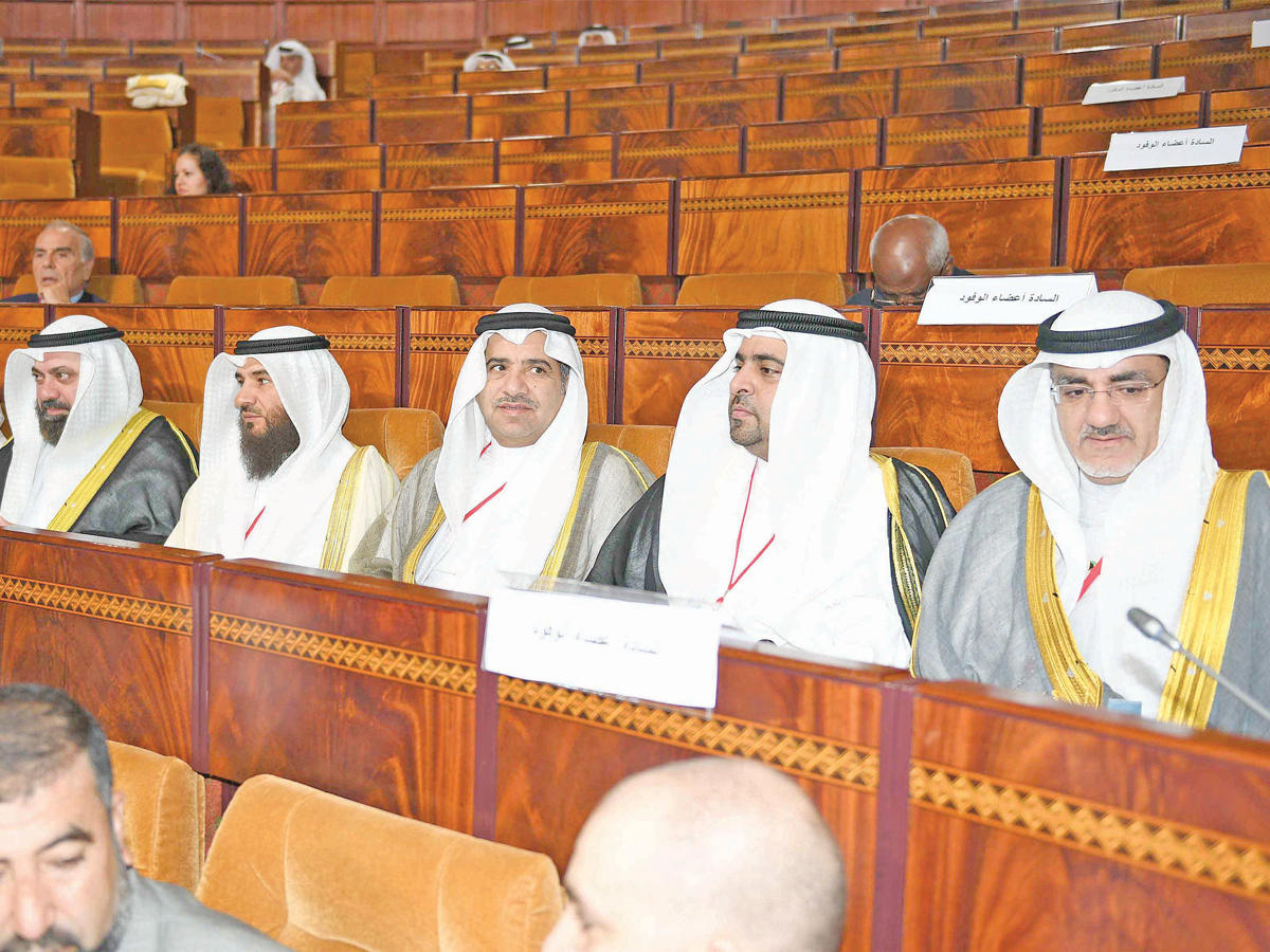 واردف: «أمامنا اليوم أكثر من استحقاق دبلوماسي وسياسي قادم، فبعد شهرين ستجتمع برلمانات العالم في سان بطرسبرغ، وقبلها ستبدأ أعمال الجمعية العامة للأمم المتحدة، وبعدهما وقبلهما العشرات من المؤتمرات القارية والمحافل الدولية، ومسؤوليتنا الكبرى تكمن في إبقاء قضية فلسطين على خارطة الوعي العالمي حية ومشتعلة، وعلينا أن نستمر في الكشف للعالم الحر، كم هو بشع وشنيع هذا العدو، وكم هو مظلوم وصامد وجبار، شعبنا الغالي في فلسطين».وأضاف الغانم: «ينعقد مؤتمرنا هذا في ظرف حساس ودقيق جدا، ظرف يشكل امتحانا مصيريا لأمتنا، وتطاولا مستفزا على كرامتنا ومقدساتنا، حيث قام الكيان الصهيوني باعتداء جريء وصادم على المسجد الأقصى المبارك، اعتداء هو الأول من نوعه، من خلال منع إقامة صلاة الجمعة، ثم من خلال منع إقامة صلاة الجماعة، ثم من خلال إقامة أبواب إلكترونية في مداخله، ثم من خلال تركيب كاميرات مراقبة عند أبوابه، يريد بها فرض إعلان سيطرته عليه، والتحكم بأداء الشعائر فيه، متحديا مشاعر مليار ونصف المليار مسلم، ومستغلا الظروف الاستثنائية التي تمر بها بلاد المسلمين، ومنتهكا كل المواثيق والأعراف: الدولية والدينية، والأخلاقية والإنسانية».وتابع: «لقد توهم هذا الكيان الغاصب، والاحتلال المتعجرف، أن الوضع الاستثنائي الذي تمر به أمتنا، سيتيح له التطاول على الأقصى الشريف، وسيمكنه من أن يعبث به كيف يشاء! وفاته أن هذا العمل المشين، هو واحد من أقوى العوامل، التي توحد مشاعر الأمة، وتجمع شتاتها، وتستثير حميتها، وتشعل غيرتها، وتجعلها تترفع عن خلافاتها، وتوجه جهودها إلى عدوها، الذي يستهدفها بأعز ما لديها، وها هي الأمة الإسلامية تتميز غيظا في كل مكان، ويوشك أن يتحول غيظها إلى طوفان، وما اجتماعنا في هذا اليوم، وفي هذا المكان، إلا مظهر من مظاهر هذا الغيظ المشبوب، وتعبير عما تغلي به الصدور والقلوب».وشدد الغانم على أن «من أوجب واجباتنا، نحن الممثلين للبرلمانات العربية، أن نهب لنصرة فلسطين قضيتنا العربية الأولى، وللمسجد الأقصى، أولى القبلتين، وأن نمثل، بصدق، نبض الأمة وشعورها، ووجدانها وضميرها علينا أن نجسد ذلك بكل صورة من صور التعبير، ومظهر من مظاهر التصوير بالكلمة والمقالة، والمحاضرة والخطبة، والقصيدة والقصة، واللحن والأنشودة، والصورة والرسمة، والشعار والصيحة، والورشة والمنتدى، والمؤتمر والاجتماع، وكل أسلوب من أساليب التعبير، أو وسيلة من وسائل التأثير، حتى تظل قضية فلسطين هي قضية كل المسلمين، ومحور اهتمام الإنسانية، في كل المحافل الدولية».الصف العربي