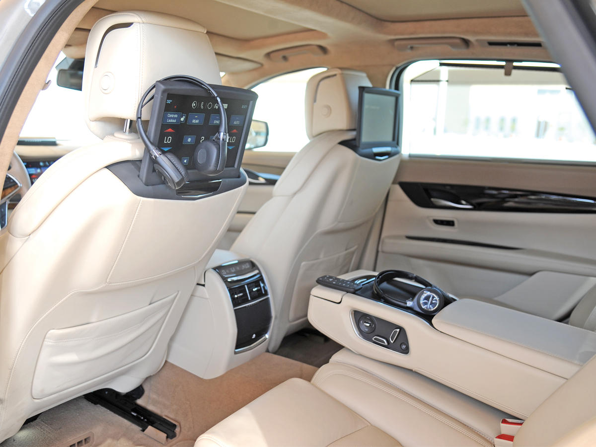 • إبداع عصري راق ضمن مقصورة منسقة بشكل غني وتعبيري ومفعم بالرحابة، يمزج الجلد الفاخر، مع الخشب الطبيعي، والمواد المصنوعة من الألياف الكربونية بطريقة لا مثيل لها.• مقاعد مريحة ذات مظهر فاخر ومطوّر. وتتضمن خيارات المقاعد الجلد الفاخر، وخمس برامج تدليك، ومقاعد بظهر قابل للطي، ومقاعد قابلة للتدفئة والتبريد تكرّس أول تطبيق لعناصر التدفئة المنسوجة ضمن المقاعد من كاديلاك.• حزمة مقاعد خلفية متحركة جديدة كلياً تقدم مستويات جديدة من الراحة والفخامة، مع نسبة تعديل تبلغ نحو 3.3 إنشات (83 ملم)، ومزايا لتعديل منطقة أسفل الظهر، وإمالة وسادة المقعد، والتدليك، والتدفئة والتبريد، ومساند لليدين تتضمن أدوات تحكم بالوسائط المتعددة مثل منافذ HDMI وUSB.• نظام ترفيه ومعلومات شامل للمقاعد الخلفية مع شاشة قياس 10 إنشات، يمكن توضيبها داخل الجهة الخلفية للمقاعد الأمامية، فضلاً عن مزايا لتوصيل الأجهزة الإلكترونية.• تحكم بالمناخ لأربع مناطق يستخدم نظام تبريد خاصا ومتكاملا يسمح للركاب بالتحكم بدرجة الحرارة وتدفق الهواء لكل مقعد، إضافة إلى نظام تنقية الهواء.• أول نظام صوت BOSE PANARAY® من كاديلاك يحتوي على 34 مكبر صوت موزعة في مواقع استراتيجية لضمان توزيع ووضوح ديناميكي واستثنائي للصوت. ويقدم هذا النظام أول تطبيق لعناصر التصميم والتكنولوجيا لمنتجات BOSE للترفيه المنزلي في قطاع صناعة السيارات.• إضاءة ترحيبية تعمل لتنير خارج السيارة عند اقتراب قائدها، اعتماداً على الإشارة التي تصلها من الريموت.• نظام كهربائي لفتح غطاء الصندوق بدون استخدام الأيدي.• مساحة رحبة للقدمين في المقاعد الخلفية 40.0 إنشا (1027) ملم.أنظمة مطورة