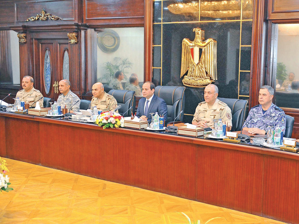 عقد الرئيس المصري عبدالفتاح السيسي اجتماعاً مع أعضاء المجلس الأعلى للقوات المسلحة، أمس، في حين أحالت محكمة جنايات القاهرة أوراق 8 متهمين إلى المفتي، لاستطلاع الرأي الشرعي في إعدامهم، بعد ثبوت اتهامهم في الهجوم على قسم "شرطة حلوان".