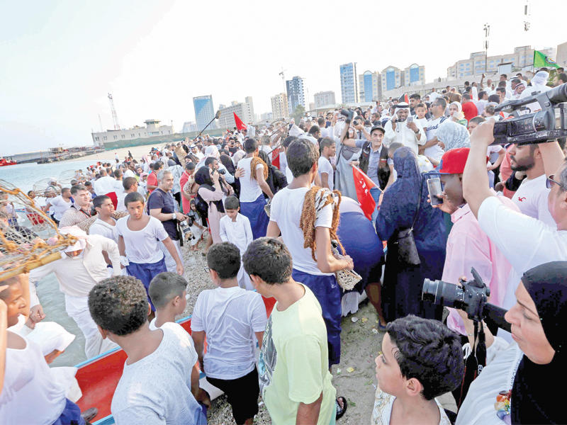 بـ«اليباب والأهازيج التراثية» استقبل الأهالي، أمس، شباب رحلة الغوص الـ29 في النادي البحري وسط مراسم احتفالية ليوم «القفال» رافعين شعار «خليجنا واحد... مصيرنا واحد».