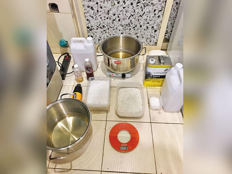تمكّن رجال الإدارة العامة لمكافحة المخدرات من ضبط مقيم بحوزته 4 كيلوغرامات من مادة الشبو، ومواد سائلة، وميزان حساس.وفي التفاصيل، وردت معلومات عن قيام أحد الأشخاص بالاتجار بالمخدرات، حيث تم عمل التحريات وجمع الأدلة التي أكدت صحة المعلومات، فتم أخذ الإجراء القانوني اللازم وضبطه في مسكنه بمحافظة الأحمدي، وبتفتيشه عثر معه على 4 كيلوغرامات من مادة الشبو ومواد سائلة، وبسؤاله عما نسب اليه اعترف بأنه يصنع الشبو في مسكنه.