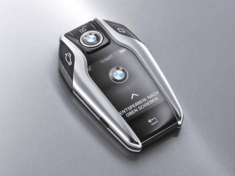 يُظهر مفتاح شاشة "BMW" معلومات مختلفة عن حالة السيارة ويسمح بالتحكّم بالوظائف المحددة عن طريق شاشة اللمس المدمجة.يمكن عرض الوقت، وكمية الوقود الباقية والمسافة الحالية، وخدمة الإشعارات، والوضع الحالي لنظام القفل المركزي، والنوافذ والسقف الزجاجي. ويمكن أيضاً، تشغيل التجهيزات التالية من خلال مفتاح شاشة "BMW": وظيفة ركن السيارة بالتحكّم عن بعد Remote Control Parking والتدفئة المساندة.يمكن شحن مفتاح شاشة "BMW" لاسلكياً، أو باستخدام كابل USB المشمول.عطور مختلفة