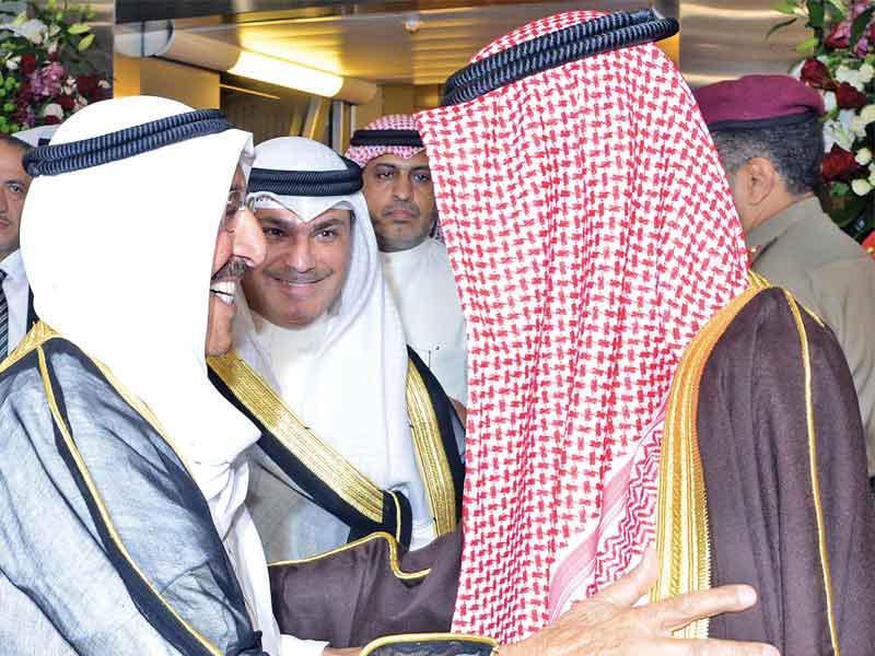 استقبل صاحب السمو أمير البلاد الشيخ صباح الأحمد، في المطار الأميري مساء أمس، سمو ولي العهد الشيخ نواف الأحمد، يرافقه نائب رئيس الحرس الوطني الشيخ مشعل الأحمد، وذلك بعد أن أجرى ولي العهد فحوصات طبية في الولايات المتحدة الأميركية كُلِّلت بالنجاح.وكان في مقدمة مستقبلي سموه رئيس مجلس الأمة مرزوق الغانم، والشيخ فيصل السعود، وسمو الشيخ ناصر المحمد، وكبار الشيوخ، ورئيس مجلس الوزراء سمو الشيخ جابر المبارك، والنائب الأول لرئيس مجلس الوزراء وزير الخارجية الشيخ صباح الخالد، ونائب رئيس مجلس الوزراء وزير الدفاع الشيخ محمد الخالد، ونائب رئيس مجلس الوزراء وزير الداخلية الشيخ خالد الجراح، ونائب رئيس مجلس الوزراء وزير المالية أنس الصالح، والمستشار بالديوان الأميري محمد ضيف الله شرار، ووزير الدولة لشؤون مجلس الوزراء وزير الإعلام بالوكالة الشيخ محمد العبدالله، إلى جانب كبار المسؤولين في الدولة.