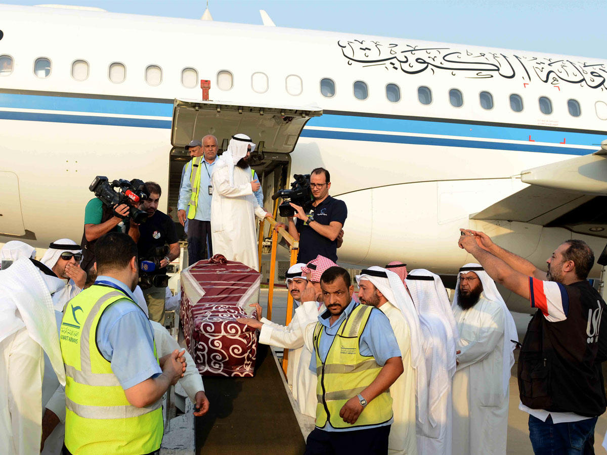 عاد إلى البلاد فجر أمس الأول جثمانا الشهيدين الكويتيين العلي، والحسيني على متن طائرة أميرية، تنفيذا لتوجيهات سمو أمير البلاد الشيخ صباح الأحمد بنقل الجثمانين إلى أرض الوطن.وكان في مقدمة مستقبلي الجثمانين على أرض المطار وزير الدولة لشؤون مجلس الوزراء وزير الإعلام بالوكالة الشيخ محمد العبدالله، وذوو الشهيدين، وحشد من المواطنين والمشايخ وسط حالة من الحزن والأسف الكبيرين، مع الدعاء إلى الله تعالى أن يتغمدهما برحمته في أعلى عليين، وأن يجزيهما خير الجزاء على أعمال البر والخير التي قاما بها، وأن يلهم ذويهما الصبر والسلوان وحسن العزاء.