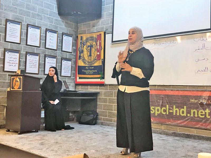 * بما أنك رئيسة أحد فروع التوستماسترز، وهو نادي "سراي"، ما أهداف النادي الذي تترأسينه؟- تمكين الأعضاء من أن يكونوا قادة فاعلين، وما أقصده أننا نفتقر إلى قادة لديهم فاعلية في التأثير، فهو إما أن يكون قائدا تغلب عليه عاطفته، أو أن يكون قائدا مستبدا. ليس لدينا قادة يخرج من ورائهم قادة، فالقادة يكتفون بنجاحهم لوحدهم، ونحن في النادي نعلم القائد كيف يكون ناجحا ومؤثرا عن طريق تبادل الأدوار، ولكل دور هدف، ومنه دور المقيم العام، وهو المراقب، الذي يراقب الأمور عن كثب.أما الدور الثاني، وهو مقيم الخطبة، فيتوجب أن يمتلك مهارات الإصغاء والتركيز، ويعطي نقدا بنَّاء. أما منسق موضوعات الساحة، فدوره تعليم المشاركين التحدث بالارتجال، فهو الذي يختار المقولات والأشخاص الذين يرتجلون بحديثهم، وذلك يعتمد بالدرجة الأولى على فن الحوار. وهناك شخص مسؤول عن التوقيت يعلمنا احترام الوقت. وتلك الأمور من خلال تبادل الأدوار تعلمك كيف تكون قائدا ناجحا، سواء في مجال عملك أو بيتك، أو أن تكون قائدا ضمن الأفراد، أو في مشروعك الخاص. وإذا كنت قائدا بالفطرة، فنحن في "التوستماسترز" نعزز إمكانياتك، ونوجهك، حتى تكون قائدا ناجحا، وبناء الشخصية القيادية يحتاج إلى مثابرة وجهد كبير.