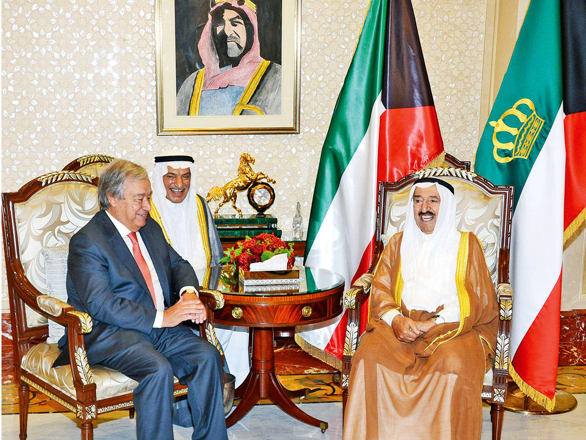 في شهادة أممية جديدة تعكس تقديراً عالمياً لدور الكويت على صعيد العمل الإنساني وحرصها على السلام وإزالة التوترات في بقاع مختلفة من العالم، اعتبر الأمين العام للأمم المتحدة أنطونيو غوتيريس أن الكويت تمثل «صوت التوازن والحوار والحكمة في المنطقة»، مثمناً دورها ومكانتها بين دول العالم وجهودها في كل القضايا السياسية والإنسانية. وفي كلمة له، خلال استقبال سمو أمير البلاد الشيخ صباح الاحمد له أمس بمناسبة زيارته للكويت، أعرب غوتيريس عن بالغ شكره وتقديره للدور القيادي البارز لصاحب السمو في مجال العمل الإنساني، فضلاً عن جهوده الإيجابية النشيطة ووساطته في احتواء الأزمة الخليجية الأخيرة.