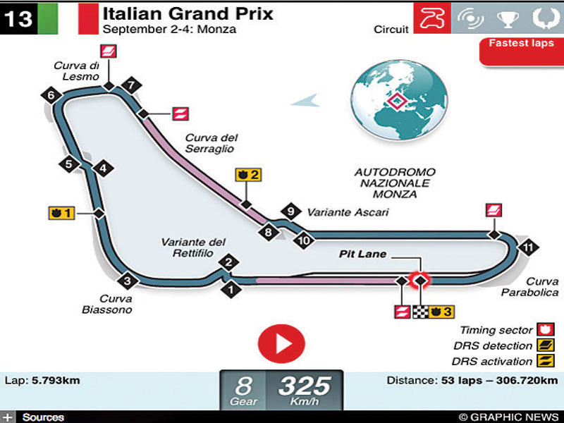 يسعى السائق البريطاني لويس هاميلتون إلى اقتناص صدارة بطولة العالم لسباقات فورمولا 1 للسيارات، وذلك في حال فوزه بسباق جائزة إيطاليا الكبرى على حلبة مونزا معقل فيراري.