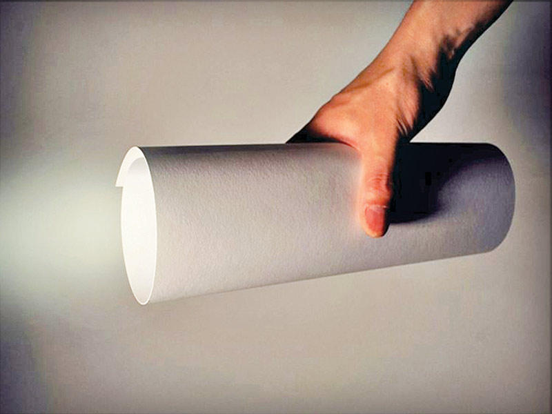 عندما نفكر بالمواد العجيبة يتبادر الى ذهننا ابتكارات التقنية العالية مثل الغرافين أو الحلول الصديقة للبيئة مثل آجر ينمو من الطحالب. لكن تبين أن واحدة من أكثر المواد أهمية لاتزال تحتفظ بقلة من الأدوار: الورق.وقد أجرى استديو نيندو الذي يتخذ من طوكيو مقرا له تجربة انطوت على قدر من السحر وحول قطعة من الورق الى مصباح يدوي يعمل بمساعدة أحبار موصلة من الشركة الناشئة إيه جي آي سي التي تصنع دوائر مرنة عبر طباعة بالحبر وتلبيد نحاس من نوعية صناعية خاصة. وقد صنع "مصباح الورق" من صفحة شديدة التحمل وورقة مقاومة للماء تستخدم بشكل نموذجي في أوراق الانتخابات. ثم قام نيندو بطباعة لوح دائرة باستخدام حبر معدني من إيه جي آي سي مباشرة على الورقة ووضع الصمغ على لمبة إل إي دي وبطاريتين بحجم الزر. وتدفق التيار الكهربائي من البطاريتين الى اللمبة عن طريق النموذج المطبوع وأزال الحاجة الى الأسلاك، كما جعل المصباح أقل تكلفة في الصنع.