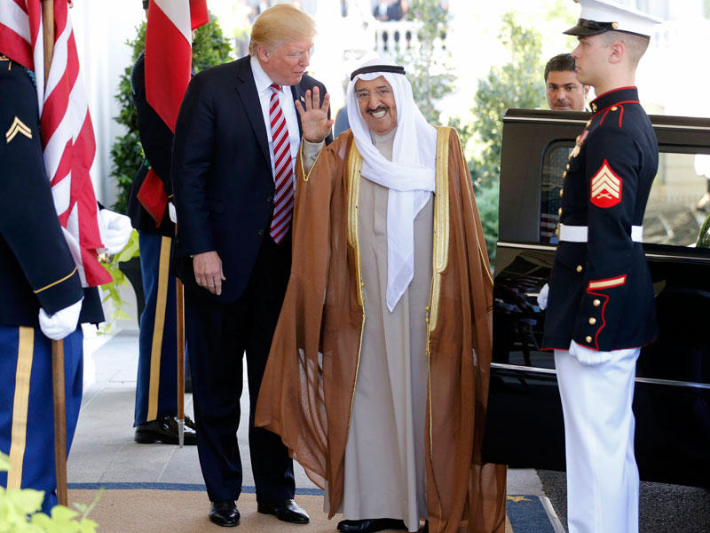 من جهته، أعرب الرئيس الأميركي دونالد ترامب، أمس، عن سعادته وتشرفه باستقبال سمو امير البلاد الشيخ صباح الأحمد في البيت الابيض.وقال الرئيس ترامب، في مؤتمر صحافي مشترك مع سمو الأمير عقب انتهاء اجتماعهما الرسمي: «نحن نتشارك بعلاقة وشراكة عميقة جدا في الذكرى الـ27 لغزو الكويت، التي نتذكرها جميعا»، معرباً عن فخر الولايات المتحدة بمساهمتها في تحرير الكويت «وللصداقة التي بنيناها مع بعضنا في تلك الأعوام».وأشاد ترامب بمساهمة الكويت الكبيرة من أجل استقرار المنطقة، فضلاً عن دور سمو الأمير «كقائد إنساني»، لافتاً إلى أن «الكويت لعبت دوراً مهماً في مكافحة الإرهاب في مختلف الميادين، لاسيما في قطع التمويل عن الجماعات الإرهابية»، فضلاً عن دورها المهم في محاربة الايديولوجيات المتطرفة بالمنطقة.وعبر عن شكره لسمو أمير البلاد لدوره القيادي والأساسي في التعامل مع العديد من القضايا، لاسيما في مجلس التعاون الخليجي، مؤكداً الأهمية الكبيرة للتعاون الأمني بين الكويت والولايات المتحدة، وفي هذا الصدد فإن مكتب التحقيقات الفدرالي (إف بي آي) يوسع تعاونه مع الحكومة الكويتية في مكافحة الإرهاب.الكويت القائدة