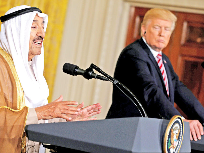 عقد سمو أمير البلاد الشيخ صباح الأحمد والرئيس الأميركي دونالد ترامب أمس في البيت الأبيض مؤتمراً صحافياً، أعرب فيه صاحب السمو عن سروره بوجوده في واشنطن، هذه المدينة العريقة «تلبية للدعوة الكريمة التي وجهها لي الصديق الرئيس دونالد ترامب».وصرح سموه خلال المؤتمر: «أود بداية أن أجدد التعبير عن خالص تعازينا، وصادق مواساتنا الى الرئيس وإلى الشعب الاميركي الصديق في ضحايا اعصار هارفي الذي ضرب ولاية تكساس، وبالغ التأثر لما نتج عنه من خسائر بشرية وتدمير كبير للمرافق العامة والممتلكات، ونجدد هنا وقوفنا مع الاصدقاء في الولايات المتحدة الاميركية ازاء ذلك، كما ندعو الله ان يجنب المدن اية اعاصير اخرى».
