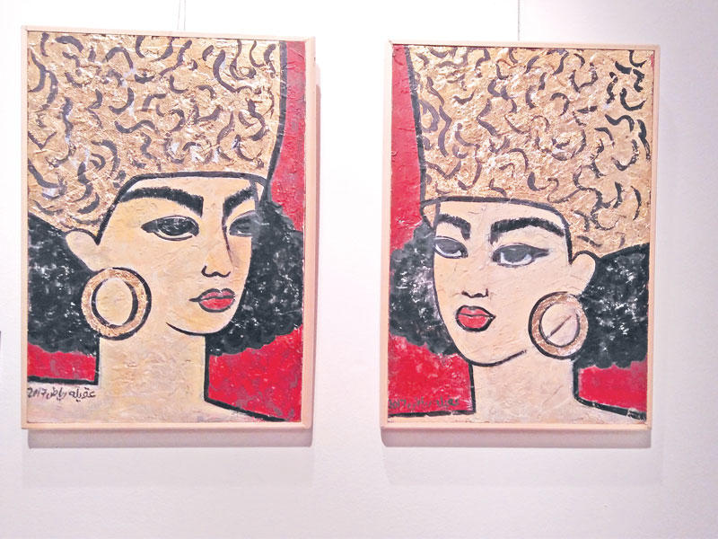 استضاف غاليري «النيل» أخيراً معرضك «ابنة الشمس» الذي يحمل دلالة رمزية وتاريخية. كيف جاءت فكرته؟بحثت كثيراً في الفترة الماضية في تراثنا المصري القديم لأفهم ماذا حدث لمصر أخيراً. من هنا، جاءت فكرة المعرض. لديّ تصور يتمثّل في أن الفرعون كان يسمى ابن الشمس كأحد ألقابه، وفي الحقيقة الفرعون لا يأخذ العرش أو يجلس على الكرسي إلا عندما يكون ابناً من دم ملكي سواء من ناحية الأب أو الأم، من ثم مصر هي ابنة الشمس أولاً أو أخيراً. بالنسبة إلي ابنة الشمس تصوِّر مصر في العصر القديم، التي كانت تملك العالم.