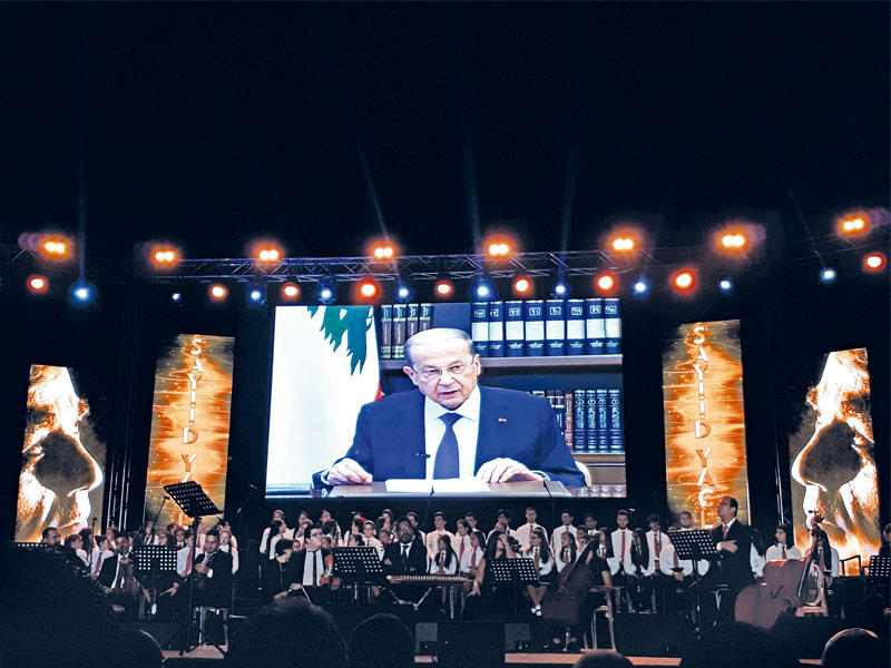 لفرادة الاحتفال وأهمية المحتفى به، أطلّ رئيس الجمهورية اللبنانية ميشال عون عبر شاشة عملاقة، بكلمة متلفزة مباشرة بمناسبة التكريم، فقال: «سعيد عقل، المفكر، والشاعر، اللبناني المقاوم، المعلم المقدام وصانع الأحلام. هذا الطليعي الآتي من زحلة إلى العالم، إتَّقد فكره بالتطلعات، بالشغف، بالأحلام، بلبنان. طوع الأبجدية، وأخرج منها شعراً ندر جماله، تغلغل كالخدر في ذاكرتنا وأغاني العمالقة، وحفر في الأدب العربي لغة جديدة لا تشبه سواه، إن نسج الغزل، فاقت رقة القصيدة عيون العشاق، وإن بنى عمارة القصيدة الوطنية نشعر معها بأن لبنان مارد بعظمة شعبه، ووجوده، ورسالته». لا قياس لحبِّ هذا الرجل لوطنه، قال عون، فهو تغنَّى بلبنان حتى الثمالة، وأغناه شاعرية وكلاماً منحوتاً من معدن الأقوياء. «يرفع لبنان فوق المصالح الصغيرة، وصراع الكبار، وأطماع المحتلين، وتشتت أبنائه، ليخرج من مصهر سعيد عقل مصقولاً بالحضارة، والإبداع، والرقي، والتفرد».جمعت الرئيس، كما أشار، بهذا العملاق صداقة زادته إيماناً بالخط الوطني، الذي التقيا عليه. «كان معجوناً بالشأن الوطني، وقاطعاً كالسيف في مواقفه وآرائه. يشبه عنفوان زحلة في ما يدافع عنه، ومذاق كرومها حين يتغنَّى بلبنانيته. ولو شاء اليوم أن يحكي، لحمل إنجيله الوطني «لبنان إن حكى»، يروي به يباس من جفت نفوسهم عن حب وطن كبير، قادر بضيق مساحته على جعل العالم أكثر بهاء، مذ حمل ألواح الأبجدية، وطاف بها على الشواطئ البعيدة».وتابع: «تشتاقك أصوات الكبار والأغاني، يا شاعر لبنان العظيم. تركت لنا أجمل ما لحن وأطرب ورافق صباحاتنا والأماسي، رافعاً الحنين إلى المدن العربية، التي غازلتها بشعرك إلى مراتب العشق والفخر والثورة».وتوجه إلى المكرم بالقول: «سعيد عقل، اليوم، بعد ثلاث سنوات على غيابك، يحضرني ما كتبته عندما تلقيت نبأ رحيلك: لن ننسى من زحلن لبنان ولبنن العالم. من زرع فينا حلماً وجعله وسع آفاق الضمير».وختم: «نعم لن ينساك لبنان، وستبقى في ضمير أجيالنا ما دام فيها مكان للحلم وللاقدام وللتمرد».