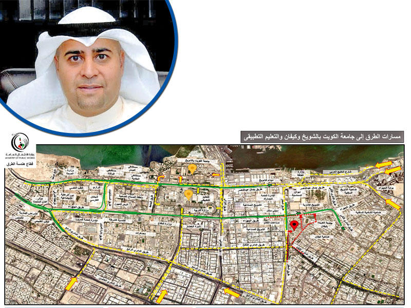 وأشار إلى قيام الأمانة العامة وإدارة الأمن والسلامة بالاجتماع والتنسيق مع الإدارة العامة للمرور، لبحث أنسب الطرق لاستخدام مرتادي الحرم الجامعي بالشويخ، نظرا للأعمال القائمة، لتفادي الازدحام والاختناقات المرورية التي تحدث في بداية كل عام دراسي. ودعا د. الملا جميع مرتادي الحرم الجامعي بالشويخ، من طلبة وأعضاء هيئة التدريس والموظفين، إلى تفادي جسر الغزالي، للوصول إلى الجامعة أو الخروج منها، واستخدام طريق الملك فهد وطريق الاستقلال وطريق الرياض السريع باتجاه المدينة، نزولا للدائري الأول باتجاه الجسر المؤدي لطريق جمال عبدالناصر، تفاديا للازدحام والاختناقات المرورية، واستخدام طريق الدائري الثاني باتجاه طريق الجهراء.وحث على استخدام طريق المطار المؤدي لطريق جمال عبدالناصر، ومن ثم جسر جمال عبدالناصر المؤدي لشارع الجاحظ، لدخول بوابة الجامعة المحاذية لمعهد الكويت للأبحاث العلمية، إضافة إلى استخدام شارع جمال عبدالناصر عند خروجهم من الجامعة، واستغلال طريق المطار للراغبين في الوصول إلى الدائري الثاني والدائري الثالث، تفاديا للازدحام والاختناقات المرورية.وتمنى د. الملا أن يكون عاما دراسيا مليئا بالإنجاز والتحصيل، بتضافر الجهود والتعاون بين الإدارات الجامعية، لتقديم أفضل الخدمات التعليمية للطلبة، متقدما بالتهاني والتبريكات، داعيا الله، العلي القدير، أن يكلل جهود الجميع بالنجاح، لرفعة وتقدم هذا الصرح العلمي الشامخ.من جهته، قال رئيس الاتحاد الوطني لطلبة الكويت - فرع الجامعة، محمد العفاسي، إن الاتحاد اجتمع مع العديد من المسؤولين بالإدارة الجامعية، للوقوف على آخر الاستعدادات لبداية العام الدراسي الجديد، داعيا جميع الجهات المعنية بالجامعة إلى ضرورة بذل الجهود، وتسخير كل الإمكانات للطلبة، تفاديا لحدوث أي مشاكل.وأوضح العفاسي لـ"الجريدة"، أن "مشكلة مواقف السيارات أزلية في موقعي كيفان والخالدية، ولابد من وضع حلول جذرية لها، وبناء مواقف متعددة الأدوار، ووضع خطط بديلة، بالتعاون مع وزارتي الداخلية والأشغال، للحد من هذه المشكلة".وطالب العفاسي الإدارة الجامعية، بالتعاون مع "الداخلية"، لحل مشكلة مخالفة الطلبة الذين لا يجدون مواقف سيارات كافية، ويقفون في أماكن "ممنوع الوقوف"، حرصا على مصلحتهم.