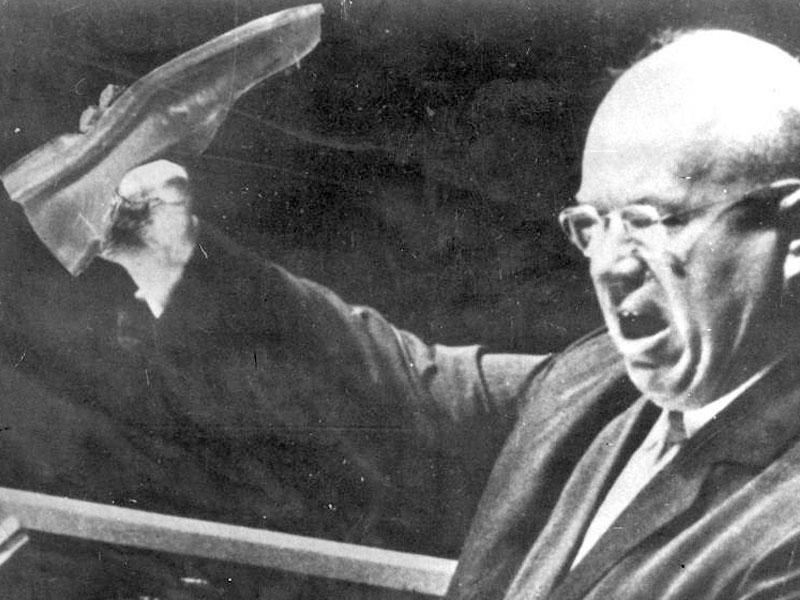تعد اجتماعات الجمعية العامة للأمم المتحدة الحدث الأكبر سنوياً في مقر المنظمة الدولية بنيويورك.فعلى مدار أسبوع مزدحم، يتجمَّع قادة العالم، من كل حدب وصوب، وتتاح لكل منهم فرصة مخاطبة العالم.وخلال هذا الأسبوع يتحوَّل مركز الأمم المتحدة في مانهاتن، الذي عادة ما يكون هادئاً، إلى ما يشبه حلبة سيرك دبلوماسي تستضيف عدداً لا بأس به من المهرجين والعروض الدراماتيكية، إن جاز التعبير.ولعل ما قام به الزعيم الروسي نيكيتا خروتشوف، بالضرب بحذائه على الطاولة، تعبيراً عن الاحتجاج، يُعد واحداً من أشهر المواقف، وربما من اللحظات الأسطورية التي ارتبطت باجتماعات الجمعية العامة.