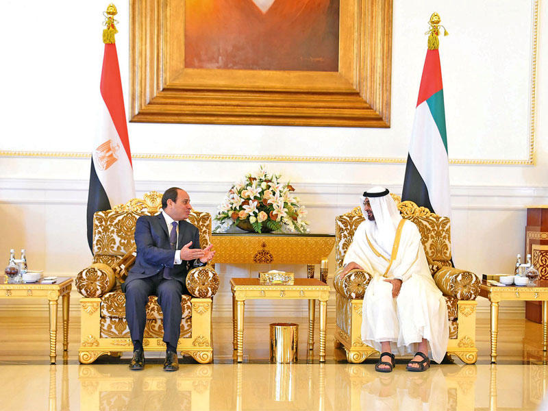جدد الرئيس المصري عبدالفتاح السيسي تأكيد بلاده أن أمن دول الخليج جزء لا يتجزأ من أمن مصر القومي، واتفق مع ولي عهد أبو ظبي، محمد بن زايد، خلال قمتهما في العاصمة الإماراتية، أمس، على ضرورة مكافحة الإرهاب والدول التي تموله، في حين أعلن الجيش المصري الاستنفار في سيناء.