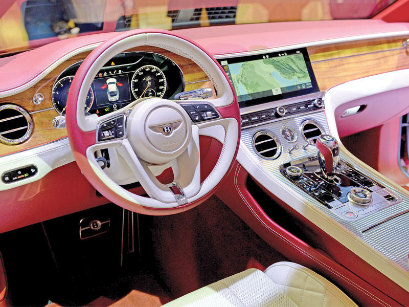 تبرِز مقصورة Continental GT الجديدة خبرة Bentley منقطعة النظير في الاستخدام الموثوق للمواد الحقيقية، بدءا من أصناف الجلود الطبيعية فائقة الجودة، وصولا إلى القشور الخشبية النادرة المستخرجة من مصادر مستدامة – بما في ذلك قشرة خشب السنط، أحدث قشرة خشبية من Bentley – والتفاصيل الكرومية المصقولة يدويا. ولأول مرة تقدم خيارات القشرة الخشبية المزدوجة الفريدة. ويجري استخدام أكثر من 10 أمتار مربعة من الخشب في كل سيارة Continental GT، ويستغرق ابتكار وتركيب التجهيزات الخشبية يدويا 9 ساعات. وُضِعت اللمسات النهائية للكونسول الأوسط، بحيث يتناسق مع الواجهة السفلية للوحة العدادات، غير أنه يمكن تخصيصه بلمسات نهائية تقنية جديدة مستوحاة من تصميم الأسطح الميكانيكية الدقيقة داخل أرقى الساعات الآلية السويسرية، والمعروفة باسم "كوت دي جنيف" أو بالفرنسية بـ Côtes de Genève. وهذا السطح – الأول من نوعه في عالم السيارات – تتم معالجته آلياً على قطعة من الألومنيوم بسمك 0.6 ملم، ويصنع من خلال المعالجة الآلية من جانب إلى جانب، بهدف ابتكار نموذج تصميمي طولي. يبلغ عرض كل صف 5 ملم، وتتم معالجته آلياً بشكل زاوي لإضفاء لمسة نهائية فعلية ثلاثية الأبعاد، ومع كل شوط للآلة يتم تشكيل تدريج دقيق بمقدار 0.5 ملم.«الزياني» أقدم وكلاء المنطقة