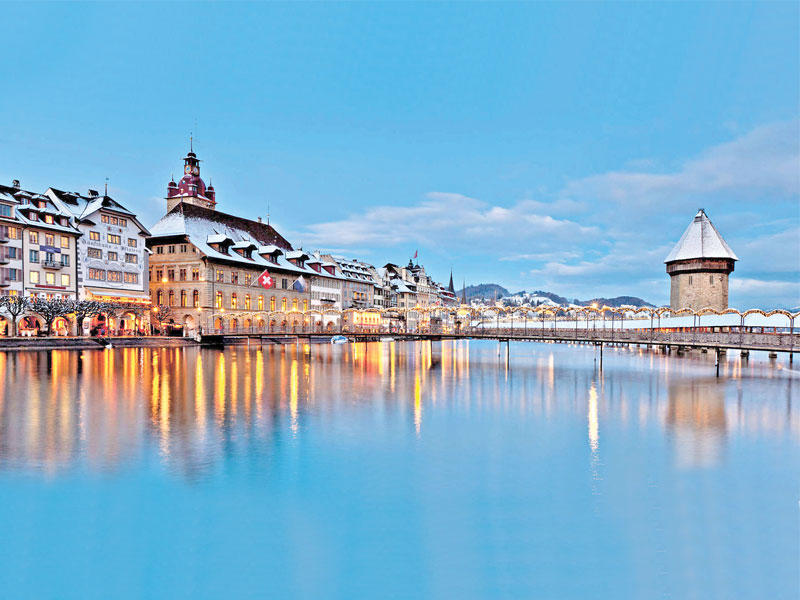 كان من المفيد لنا بعد قضاء فترة استرخاء واستجمام في ربوع القرى السويسرية المذكورة، الانتقال إلى مدينة لوسيرن عبر القطار، تلك المدينة التي تحتوي على العديد من الأماكن التي يقصدها السياح، وأولها بحيرتها الشهيرة. وتأخذك هذه المدينة إلى وسط الطبيعة الجبلية الخلابة، والتي تقبع بيوتهاعلى محيط بحيرة كبيرةيصل تدفقها للخارج إلى نهر الرويس، حيث تسحرك مناظرها الجميلة، والجبال المحيطة بها كجبال بيلاتوس وريكي وستانسر هورن، ويحيط ببحيرتها مجموعة من البيوت التاريخيّة التي تصطفّ وكأنّها لوحة فنية ملونة.ولا يقل روعة وجمالا عما رأيناها نهر «الرويس»، و”جسر الكنيسة» الذي يعود بناؤه إلى القرن الرابع عشر، وهو أقدم جسر خشبي مغطّى في أوروبا، ويحوي في داخله عددا من الرسوم واللوحات الجميلة، أما المدينة القديمة فهي جانب آخر من الجوانب المشرقة والسياحية المهمة في لوسيرن، كما انها جهة مثالية للسياح الذين يرغبون في الاستمتاع بقضاء عطلة لا تنسى.تمثال الأسد المحتضر دفاعاً عن المبدأ