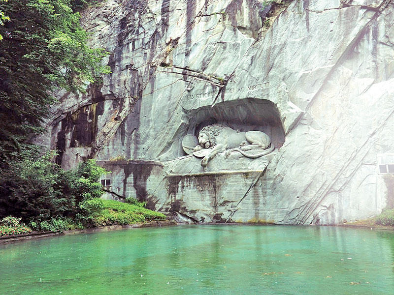خلال زيارتنا مدينة لوسيرن، انتقلنا لزيارة نصب الأسد الجريح، الذي يصوره وهو يحتضر، بعد سهم اخترق جسده، وهو من التصاميم المنحوتة الشهيرة جداً، وقد قيل عنه إنه "أكثر قطعة أثرية محزنة في العالم".ويعد هذا التمثال المنحوت في قلب جبل الجليد والذي يطل على البحيرة في لوسيرن، قطعة أثرية تخلد ذكرى الجنود السويسريين الذين جاهدوا بشرف وقتلوا دفاعاً عن العائلة المالكة الفرنسية سنة 1792 ميلادية ، فتم نحته من عام 1801م حتى عام 1802 رمزاً لهؤلاء الجنود.