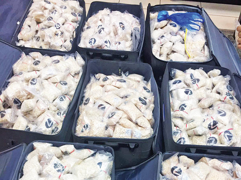 ولفت الديين إلى الدعم غير المحدود من القيادات العليا لوزارة الداخلية لأجهزة مكافحة المخدرات، حيث وفرت لرجال الأمن أحدث المعدات والأجهزة ضمانا لنجاحها في كشف وملاحقة الأساليب المتطورة التي تلجأ إليها التشكيلات العصابية لتهريب المخدرات لإفشال مخططاتها الإجرامية، وإحكام الطوق عليهم، وتضييق الفرص أمامهم، وتقديمهم للعدالة. وأضاف أن قطاع الأمن الجنائي، ممثلا في الإدارة العامة لمكافحة المخدرات والإدارة العامة للمباحث الجنائية، وفي إطار التنسيق بينهما، تمكن خلال الفترة من 1/7/2017 حتى 14/10/2017 من ضبط 15.506 كيلوغراما من الشبو، و13.118 كيلوغراما من الهيروين، و14.032 كيلوغراما من الحشيش، و21.100 كيلوغراما من الكيميكال، و8270 حبة كبتاغون، و27635 حبة ترامادول، و350 غراما من الكوكايين، و17365 حبة مخدرة، إضافة إلى 5445 زجاجة من الخمور المستوردة.وذكر انه تم ضبط مزرعة ماريغوانا تحتوي على 1000 شتلة جاهزة لعملية الترويج، مشيرا إلى أنه تم تسجيل 107 قضايا جلب واتجار مخدرات خلال الفترة نفسها، كما تم إحباط محاولة إدخال مليونين و30 ألف حبة مخدرة (كبتاغون) إلى البلاد عن طريق الشحن الجوي، بالتعاون مع الإدارة العامة للجمارك.هاجس رئيسي