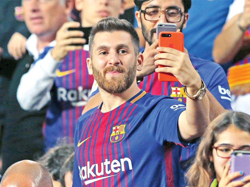 شبيه ليونيل ميسي حضر إلى ملعب كامب نو لمتابعة مباراة برشلونة وملقا التي انشغل فيها جمهور البرشا بالتقاط صور للمشجع بدلاً من متابعة فريقهم الذي فاز بثنائية