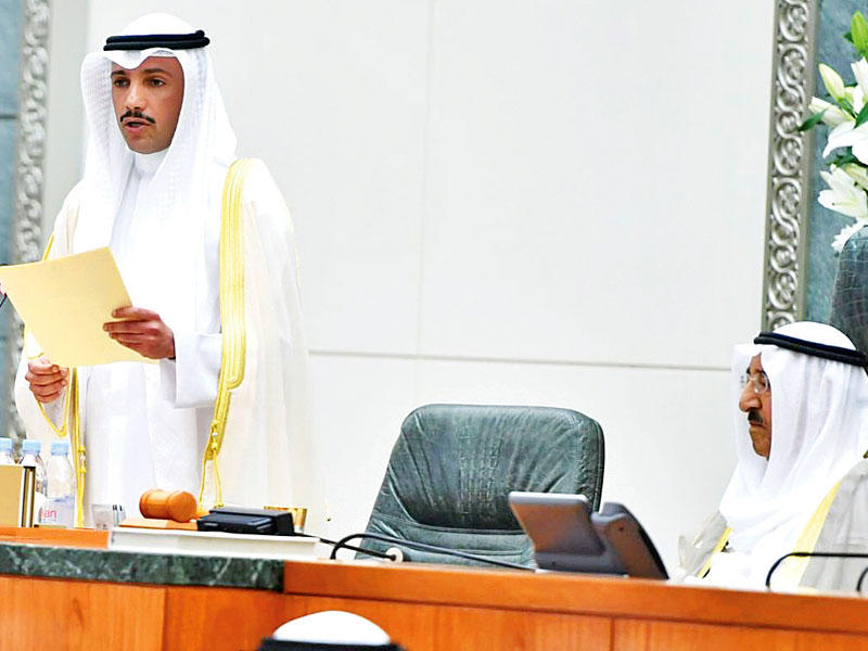 وفيما يلي نص كلمة رئيس مجلس الأمة مرزوق الغانم خلال مراسم الإفتتاح:بسم الله الرحمن الرحيمالحمد لله رب العالمين ، والصلاة والسلام على نبينا محمد اﻷمين ، وعلى آله وصحابته الميامين .حضرة صاحب السمو أمير البلاد ، حفظكم الله ورعاكم .سمو ولي العهد ، حفظكم الله .سمو رئيس مجلس الوزراء الموقرالإخوة والأخواتضيوفنا الكرام .السلام عليكم ورحمة الله وبركاته .وبعد : فيسرني - أصالة عن نفسي ، ونيابة عن زملائي وزميلاتي ، أعضاء مجلس اﻷمة - أن نرحب بكم في مستهل هذا اللقاء ، وفاتحة هذا الإلقاء ، أجمل ترحيب وأبهاه ، وأكمله وأزهاه .نرحب بكم يا سمو اﻷمير في قاعة عبد الله السالم ، الذي ترعرت يافعا بين يديه .في بيت الشعب ، الذي بسطت ظل رعايتك عليه .في مؤسستنا التشريعية التي رفعت عاليا بناءها، وأرسيت دعائمها، فراحت في ظل برك بها ( تؤتي أكلها كل حين بإذن ربها ) .نرحب بك قائدا حكيما لمسيرتنا، وربانا ماهرا لسفينتنا ، التي حفظت لها توازنها واتزانها ، وعززت مكانتها ووزنها ، فإذا هي تمخر العباب ، في سلاسة وانسياب، غير متأثرة بأعاصير السياسة العاتية ، وتقلباتها المتوالية ، وإذا هي في ظل هذا النهج المتين ، تأوي "إلى ربوة ذات قرار ومعين " . وعضيدك في ذلك سمو ولي عهدك الأمين صاحب الرأي الرشيد والنظر السديد .نرحب بك - يا سمو الأمير - ومآثِرُكَ تتزاحم في أذهاننا ، وتتسابق إلى ألسنتنا ، فلا ندري ما نأخذ منها وما ندع ، ويضيق الوقت بذكرها وإن اتسع .تمتزج بمشاعر شعبك ، حتى كأنه نبض في قلبك ، وتدنو منه ، حتى كأنك شيء فيه ، فلا يفقد تهنئتك في فرح ، ولا مواساتك في ترح .وتتخذ من بالغ حكمتك ، سياجا حاميا من الأخطار ، ومن ثاقب رأيك ، معراجا مُبلِّغا للأوطار ، ومن ماضي شجاعتك ، ضمانا للأمن والاستقرار .نبذتَ نهجَ الإفراط والتفريط ، واخترت نهج الاعتدال الوسيط ، وسرت بشعبك على طريق قويم الاستواء ، وجمعتهم على كلمة سواء .تتقدم بك الأيام ، فتزيدك حكمة ، وتثقلك الأعباء ، فترفعها بعزمة ، فلا تنال من عزيمتك الأيام ، ولا تقف دون عطائك الأعوام ، بل تذللها بإرادة ماضية ، ونفس إلى العلياء متسامية.فلك - يا سمو الأمير - من مجلس اﻷمة ، كل الشكر والعرفان ، ولك من سائر اﻷمة ، كل التقدير والامتنان ، ودعاؤنا لله تعالى ورجاؤنا ، أن يمدك دائما بظهير من التأييد ، ونصير من التسديد .الإخوة والأخواتنفتتح في هذا اليوم المبارك ، دور الانعقاد الثاني ، للفصل التشريعي الخامس عشر ، وسط جملة من التحديات والملمات ، والمستجدات والتطلعات ، والمهام والالتزامات ، التي سأحاول أن أتناول بعضها ، وأتحدث بما يتيسر عنها .واسمحوا لي أن أتجاوز الهم المحلي ، وأنتقل إلى الهم الخليجي ، الذي نحن جزء لا يتجزأ منه ، وبعض لا ينفصم عنه ، وأعني بذلك اﻷزمة الخليجية ، التي هي - في هذه اﻷيام - الشغل الشاغل لنا ، والهم المسيطر علينا .لقد مثل مجلس التعاون الخليجي منذ بداية تأسيسه أنموذجا متميزا فريدا ، ببنائه المتماسك ، ونسيجه المتجانس ، وعاداته المتماثلة ، وتقاليده المتناغمة ، فإذا هو لحمة واحدة ، وعلاقة رائدة ، وأخوة حميمة ، وصلات كريمة ، ومودة وتحاب ، ومصاهرة وأنساب .لقد كان مجلس التعاون الخليجي ، هو أعظم منجز تأريخي ، يحققه قادته العظام ، لأبنائه الكرام .إذ هو حصننا المنيع ، ودرعنا الواقي ، وبيتنا الجامع ، وأسرتنا الكبيرة .وما المرء إلا بإخوانـــــــــــه كما يقبض الكف بالمعصمولا خير في الكف مقطوعة ولا خير في الساعد الأجذمهو السند والعماد ، والثروة والاقتصاد ، والوحدة والاتحاد ، والعمق والامتداد ، والقوة والمهابة ، والحصانة والمناعة .هو مجلس التعاون الخليجي الحبيب ، الذي تجذر في نفوسنا ، وامتزج بمشاعرنا ، وخالط بشاشة قلوبنا .هو منجزنا الكبير ، ورمزنا اﻷثير ، الذي لا نقدر على تصور أن نفقده بأي حال ، أو أن يكون عرضة للتفكك والزوال .من أجل هذا ، وغير هذا ، كان الحفاظ عليه ، والاستمساك به ، يقع في أولى أولوياتنا ، ويحتل الصدارة من اهتمامنا .ومن أجل هذا ، وغير هذا ، كان ما تعرض له م