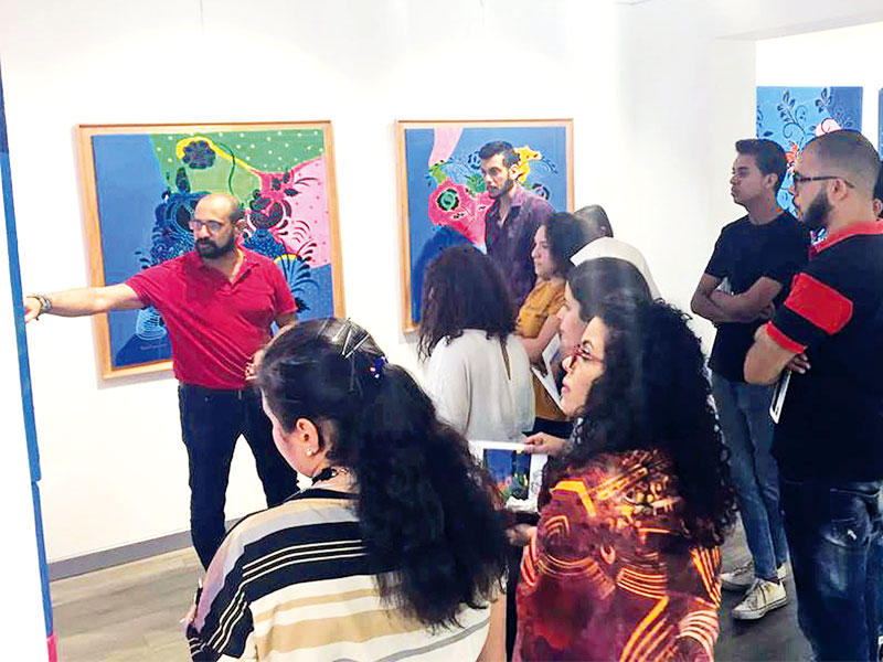«ترانيم لونية» لوحات تحتفي بشاعرية الخطوط والألوان في القاهرة