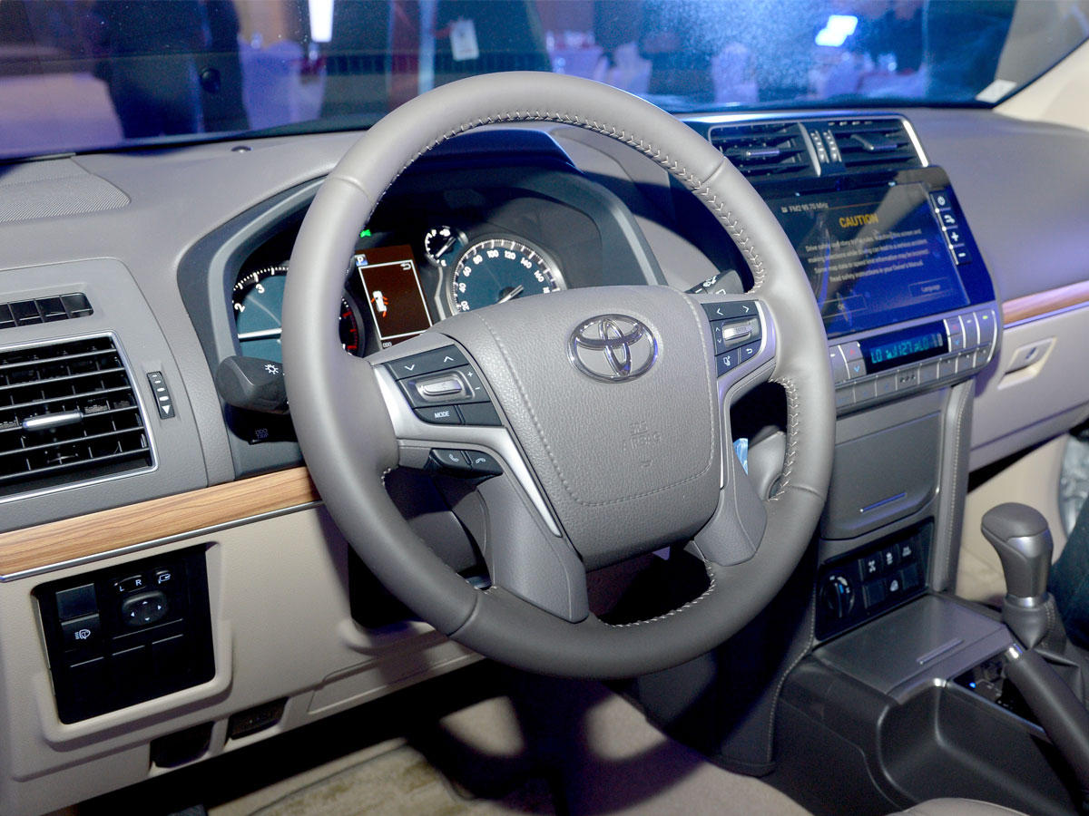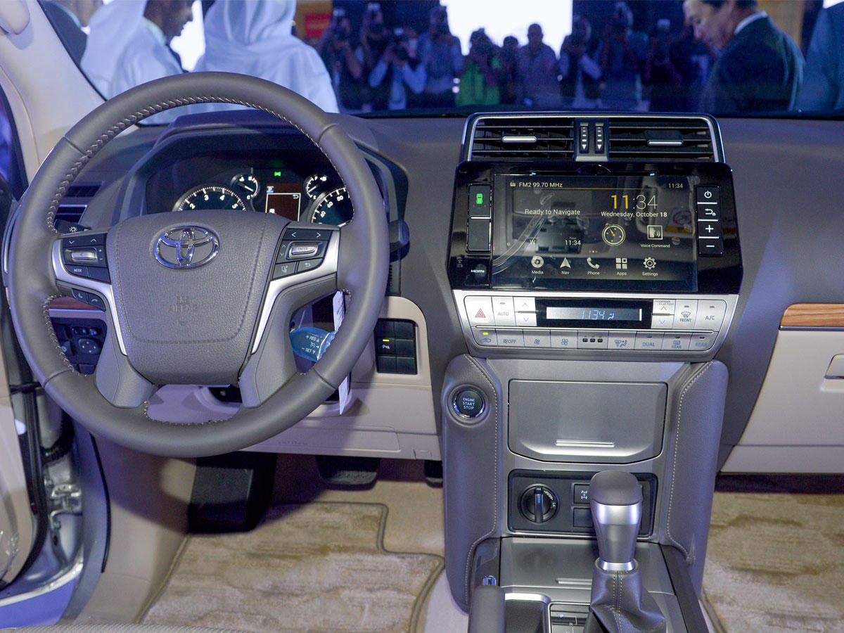 ومع مجموعة من المفاتيح وأزرار التحكم الموزعة بشكل مريح، فإن لوحة العدادات بتصميمها الجديد تضم نظام وسائط متعددة مع شاشة بقياس 8 بوصات، وعدادات السرعة "أوبتيترون" (Optitron)، وعجلة قيادة آلية، فضلاً عن شاشة عرض ملونة متعددة المعلومات قياس 4.2 بوصات.ولمساعدة السائقين الذين لا يتمتعون بخبرة كافية في القيادة على الطرقات الوعرة وتحقيق الاستفادة القصوى من أداء هذه المركبة الرباعية الدفع، فإن نظام الدعم على جميع التضاريس الذي يمتاز به طراز تويوتا برادو يجعل منه إحدى أكثر المركبات تطوراً وأماناً ومتعة في القيادة.