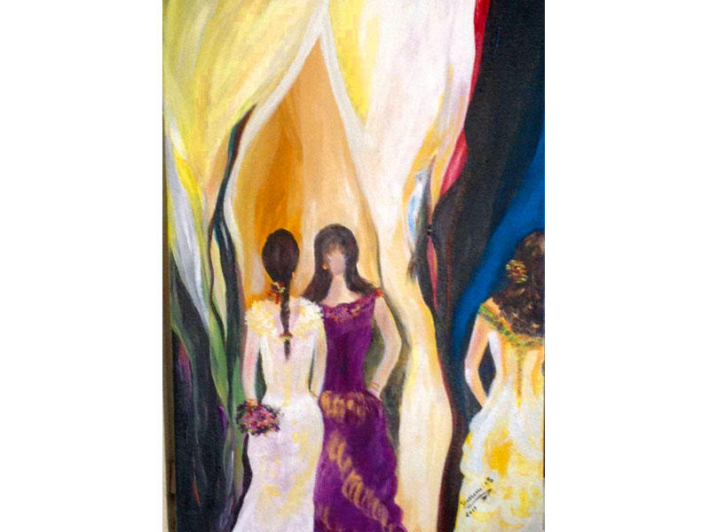 بين 20 و22 أكتوبر الفائت شاركت الرسامة التشكيلية اللبنانية جومانا أبو مطر في «معرض اللوفر للفن المعاصر» في باريس، وذلك من خلال لوحة «الفتيات الثلاث» التي تروي فيها تطلعات كل واحدة منهن، تميزت بأسلوب تعبيري استطاعت من خلاله أن تطوّع الأكريليك ليصبح مادة نابضة بالضوء تتداخل والخطوط والحركة لتؤلف في مجملها عالماً متكاملاً يحيط بالفتيات الثلاث وينصهر مع أحلامهن وطموحاتهن. تمتزج المرحلة التعبيرية عند جومانا أبو مطر بالمرحلة الانطباعية والحروفية وفن الاستشراق، من هنا يكتسب تأليف اللوحة عندها خصوصية يضفي عليها بعداً إنسانياً شاملا يقوم على تراكم ثقافي غني بلعبة النور والظل التي تشربتها الفنانة من طبيعة بلادها ومن تعمقها بالرسامين في المشرق والمغرب.