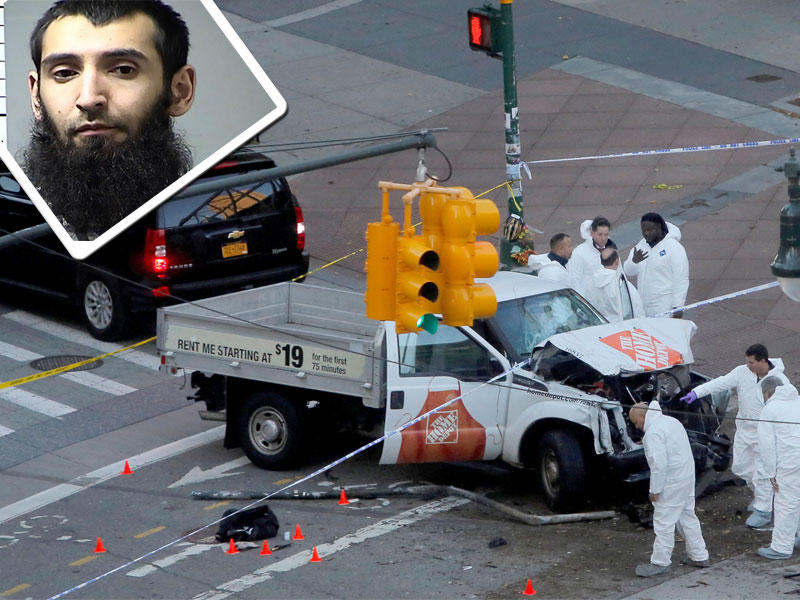 على بعد عدة أبنية من النصب التذكاري لبرجي التجارة العالميين في منطقة مانهاتن بنيويورك، اللذين تهدما في هجمات 11 سبتمبر 2001، أكبر هجمات إرهابية في تاريخ الولايات المتحدة، قام مواطن من أوزبكستان (29 عاماً)، ويدعى سيف الله سيبوف، ويعيش في الولايات المتحدة منذ عام 2010، وله علاقة بتنظيم «داعش» الإرهابي، بتنفيذ عملية دهس وقع فيها 8 قتلى بينهم 5 سياح من الأرجنتين وبلجيكية، و15 جريحاً، قبل أن تعتقله الشرطة.وقام المهاجم، الذي أكد حاكم مدينة نيويورك أندرو كوموأمس، أنه «على صلة بتنظيم داعش الإرهابي»، باستئجار شاحنة نقل، قبل ساعة من تنفيذ هجومه، بالدخول الى طريق مخصص للدراجات الهوائية، ودهس عددا من الأشخاص حتى اصطدم بحافلة مدرسية، وعندها ترجل ملوحا بمسدس، فأطلقت الشرطة النار عليه، وتمكنت من توقيفه، ليتضح أنه كان حاملا مسدساً يطلق كرات طلاء.