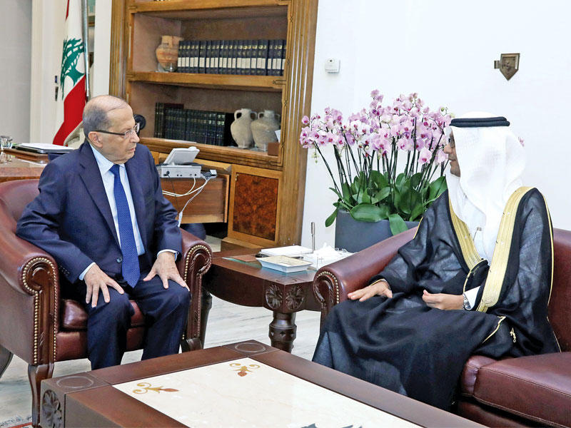 والتقى عون سفراء دول أجنبية وأخرى عربية، منها مصر وقطر والإمارات، لبحث الغموض، الذي يلف استقالة الحريري وتداعياتها على البلد الصغير. وخلال اجتماع ممثل مع مجموعة الدعم الدولية للبنان، التي تشكلت في 2013، وتضم كلاً من الأمم المتحدة والصين وفرنسا وألمانيا وإيطاليا وروسيا وبريطانيا والولايات المتحدة والاتحاد الأوروبي وجامعة الدول العربية، أعرب عون "عن قلقه لما يتردد عن الظروف التي تحيط بوضع الحريري وضرورة جلائها".في المقابل، أكد وزير الخارجية الأميركي ريكس تيلرسون، أمس، أن واشنطن تراقب الموقف "بعناية شديدة"، وتدعم "حكومة لبنان الشرعية"، و"تطالب الأطراف الخارجية الأخرى بعدم التدخل فيه"، معتبراً أن الحريري "شريك قوي"، واتخذ قرار الاستقالة "بإرادته".وقال وزير الخارجية الفرنسي جان إيف لودريان، أمس، إنه يعتقد أن "الحريري لا يخضع للإقامة الجبرية في السعودية، وليس هناك أي قيود على حركته".وبعد اتصال أجراه وزير الخارجية الألماني زيغمار غابرييل مع نظيره السعودي عادل الجبير للإعراب عن قلقه إزاء احتمالات زعزعة الاستقرار في لبنان، أعلنت الخارجية الألمانية أن برلين ليس لديها سبب للاعتقاد بأن الحريري محتجز في السعودية، معربة عن قناعتها بأن خطوات التقدم التي تم إحرازها تحت قيادته للحكومة لا ينبغي "تعريضها للخطر".بدوره، اعتبر الأمين العام لـ"حزب الله" حسن نصرالله، أن "استدعاء السعودية لرئيس الحكومة وإجباره على الاستقالة وضعا لبنان أمام مرحلة جديدة ومهمة، وخطورتها مرتبطة بإرادة اللبنانيين"، مضيفاً: "الكل بات على يقين بأنه محتجز في السعودية وممنوع حتى اللحظة من العودة إلى لبنان". وقال نصرالله: "نحن على خلاف سياسي مع المستقبل، ولكن السعودية تحاول فرض رئيس حكومة جديد على لبنان، وزعيم جديد للتيار، ونحن نضم صوتنا إلى تيار المستقبل، ونطالب بعودة الحريري". وأردف: "نطالب المملكة بإطلاق سراح الحريري، ونعتبر أن الحكومة ما زالت قائمة وشرعية، واستقالة الحريري غير شرعية وغير دستورية، ولا معنى لاستشارات نيابية"، لافتاً إلى أن "السعودية طلبت من إسرائيل ضرب لبنان، وهي حاضرة لأن تقدم عشرات مليارات الدولارات مقابل ذلك".