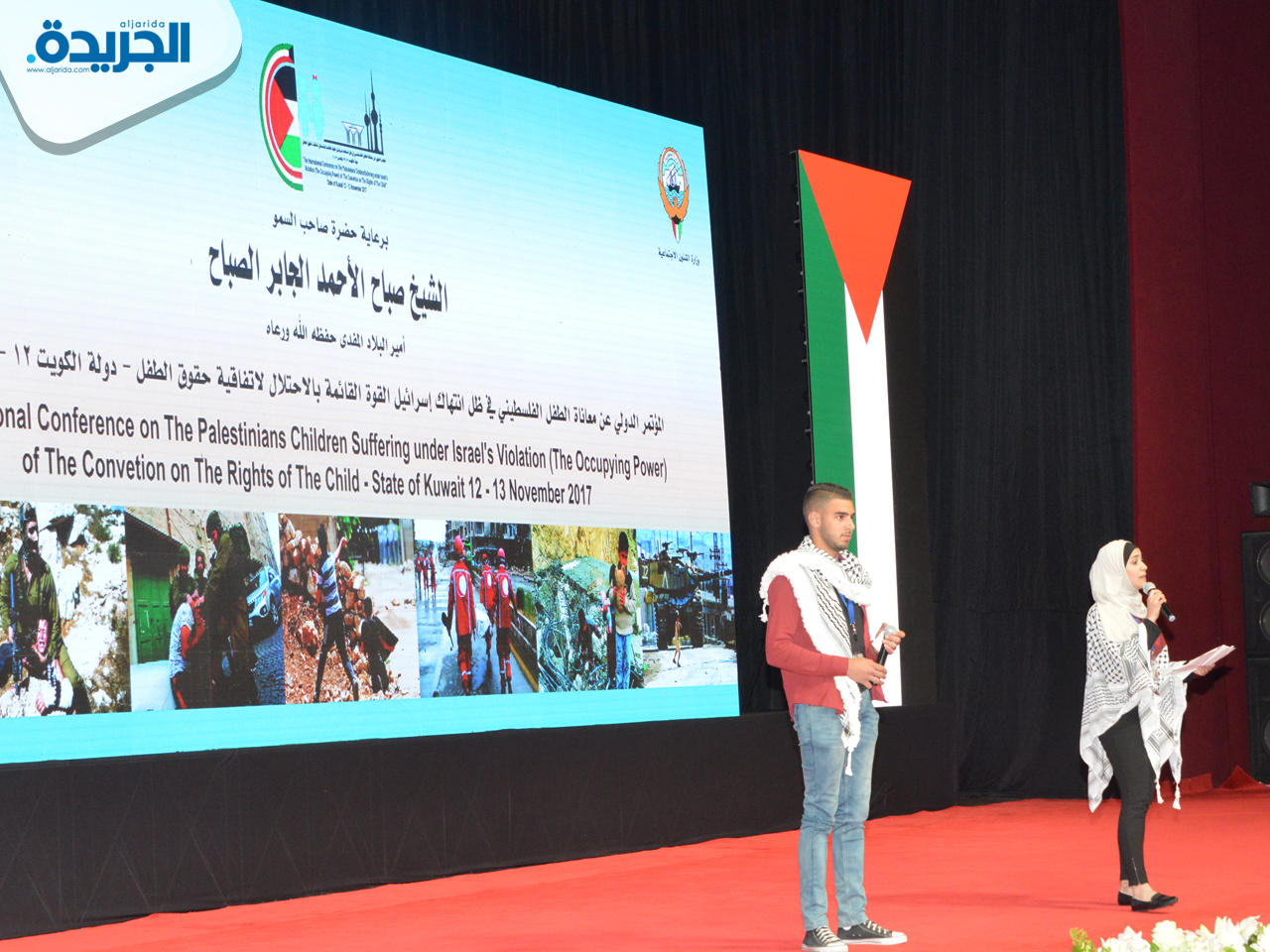 تحت رعاية وحضور حضرة صاحب السمو أمير البلاد الشيخ صباح الأحمد الجابر الصباح حفظه الله ورعاه وبحضور فخامة الرئيس محمود عباس رئيس دولة فلسطين الشقيقة أقيم صباح اليوم الاحد حفل افتتاح المؤتمر الدولي حول معاناة الطفل الفلسطيني في ظل انتهاك اسرائيل القوة القائمة بالاحتلال لاتفاقية حقوق الطفل وذلك على مسرح قصر بيان.هذا وشهد الحفل معالي رئيس مجلس الأمة مرزوق علي الغانم ومعالي الشيخ جابر العبدالله الجابر الصباح وسمو الشيخ ناصر المحمد الأحمد الصباح وسمو الشيخ جابر المبارك الحمد الصباح رئيس مجلس الوزراء ومعالي النائب الأول لرئيس مجلس الوزراء ووزير الخارجية الشيخ صباح الخالد الحمد الصباح ومعالي الأمين العام لجامعة الدول العربية أحمد أبوالغيط والأمين العام لمنظمة التعاون الإسلامي الدكتور يوسف بن أحمد العثيمين ونائب رئيس مجلس الوزراء ووزير الدفاع الشيخ محمد الخالد الحمد الصباح ونائب وزير شؤون الديوان الأميري الشيخ علي جراح الصباح ونائب رئيس مجلس الوزراء ووزير المالية أنس خالد الصالح وكبار المسؤولين بالدولة وكبار القادة بالجيش والشرطة والحرس الوطني.وبدأ الحفل بالنشيدين الوطنيين للبلدين الشقيقين ثم تلاوة آيات من الذكر الحكيم بعدها ألقى فخامة الرئيس محمود عباس رئيس دولة فلسطين الشقيقة كلمة هذا نصها: