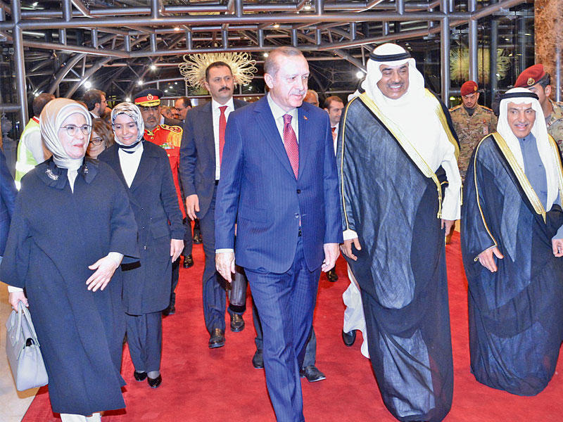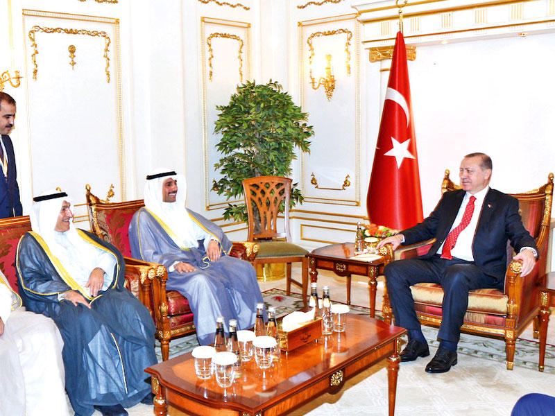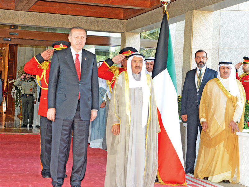 من جهة أخرى، أقام سمو أمير البلاد مأدبة غداء على شرف الرئيس إردوغان والوفد الرسمي المرافق له، وذلك بمناسبة زيارته الرسمية للبلاد.وكان الرئيس التركي إردوغان والوفد الرسمي المرافق له قد وصل إلى البلاد مساء أمس، في زيارة رسمية للبلاد، حيث كان في استقباله النائب الأول لرئيس مجلس الوزراء وزير الخارجية الشيخ صباح الخالد، ورئيس بعثة الشرف المرافقة المستشار بالديوان الأميري محمد أبوالحسن.ويرافق الرئيس إردوغان وفد رسمي يضم كلا من رئيس الأركان العامة خولوصي أكار، ووزير الخارجية مولود تشاووش أوغلو، ووزير العدل عبدالحميد جول، ووزير الاقتصاد نهاد زيبقجي أوغلو، ووزير الطاقة والموارد الطبيعية برآت ألبايراق، وعدد من كبار المسؤولين في جمهورية تركيا.وغادر الرئيس التركي البلاد مساء أمس، وكان على رأس مودعيه على أرض المطار سمو أمير البلاد، ورئيس مجلس الأمة، وسمو رئيس مجلس الوزراء، والنائب الأول لرئيس مجلس الوزراء وزير الخارجية صباح الخالد، ونائب رئيس مجلس الوزراء وزير الدفاع الشيخ محمد الخالد، ونائب وزير شؤون الديوان الأميري الشيخ علي الجراح، ووزير الدولة لشؤون مجلس الوزراء وزير الإعلام بالوكالة الشيخ محمد العبدالله، وكبار القادة بالجيش والشرطة والحرس الوطني والإدارة العامة للاطفاء.إردوغان يستقبل الغانم والمبارك
