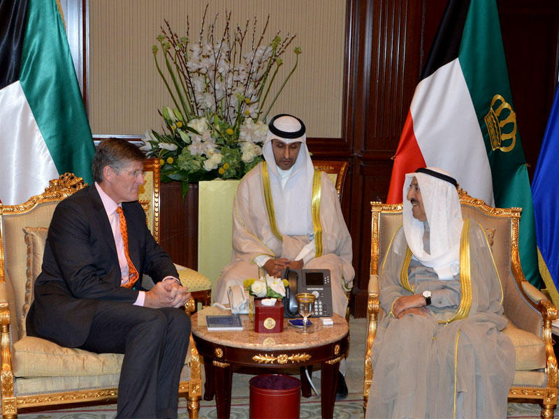 صاحب السمو أمير البلاد الشيخ صباح الأحمد الجابر الصباح يستقبل الرئيس التنفيذي لمجموعة سيتي بنك مايكل كوربات ومسؤولين في مجموعة (سيتي بنك)
