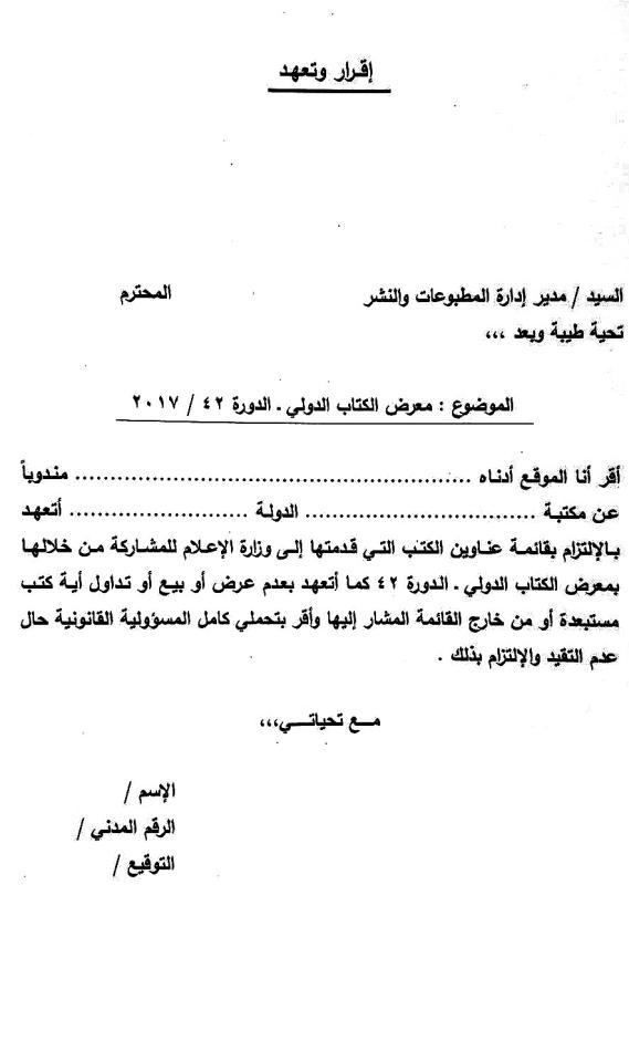المطبوعات والنشر في «الإعلام» تفاجئ الناشرين بإقرار وتعهد مستغرب في معرض الكتاب الـ42