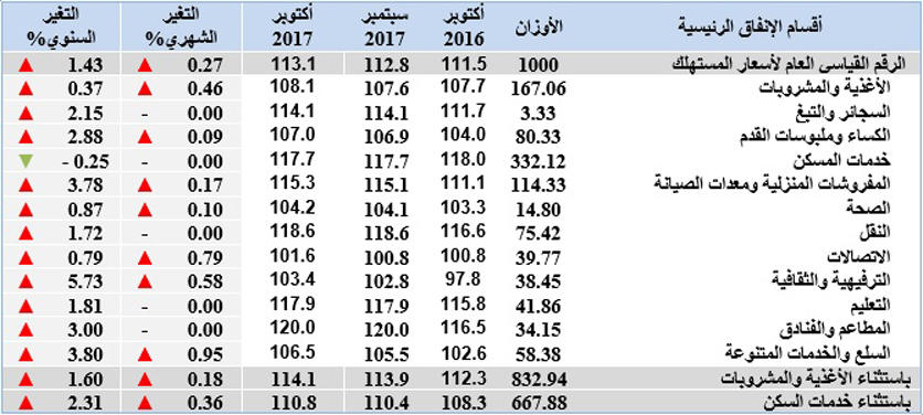 «الاحصاء»: ارتفاع التضخم المحلي بنسبة 1.34% اكتوبر الماضي
