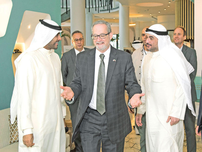 وصول السفير الأميركي لورنس سيلفرمان بصحبة عمر قتيبة الغانم الرئيس التنفيذي لشركة صناعات الغانم وعبداللطيف الشارخ مدير إدارة الاتصالات في شركة صناعات الغانم