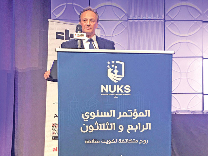 من جهته أوصى سفير الكويت بالولايات المتحدة الشيخ سالم الصباح، الطلاب والطالبات هناك بالاستمرار في المثابرة على تحصيلهم العلمي، وتمثيل الكويت خير تمثيل في الخارج، مشددا على أهمية الالتزام بالقوانين الأميركية، وتجنب مسببات المشاكل التي قد تؤثر سلبا في دراستهم ومستقبلهم.جاء ذلك في كلمة الشيخ سالم، بمناسبة اختتام المؤتمر الـ34 للاتحاد الوطني لطلبة الكويت فرع الولايات المتحدة في مدينة أتلانتا بولاية جورجيا الأميركية.ودعا الطلبة إلى الاستمرار في التواصل مع السفارة بواشنطن والقنصلية في لوس أنجلس والمكتبين الثقافيين، بغرض التعاون معهم، وتقديم ما يدعم تعليمهم، ويسهل معيشتهم.من جهتها، هنأت مديرة المكتب الثقافي في واشنطن د. أسيل العوضي الطلبة بنجاح المؤتمر، واستعرضت خطة عمل المكتب الثقافي في المستقبل القريب، والتي تتضمن تطبيق نظام إلكتروني جديد للتواصل مع الطلبة والمرشدين الأكاديميين في المكتب، حيث يهدف إلى تقديم نقلة نوعية للخدمات المقدمة للطلبة. واستمرت فعاليات المؤتمر، الذي يقام تحت شعار "روح متكاتفة... لكويت متآلفة" ثلاثة أيام، بمشاركة نحو خمسة آلاف طالب وطالبة، وتضمن العديد من الفعاليات المتنوعة التي تسلط الضوء على قضايا سياسية ورياضية وإنسانية واقتصادية وغيرها، بحضور عدد من أعضاء مجلس الأمة وشخصيات بارزة.
