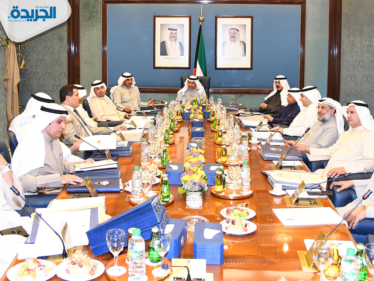 عقد مجلس الوزراء اجتماعه الأسبوعي، بعد ظهر أمس، في قاعته بقصـــر بيــان برئاسة سمو الشيخ جابر المبارك.وبعد الاجتماع صرح وزير الدولـة لشؤون مجلس الوزراء وزير الإعلام بالوكالة الشيـخ محمد العبداللـه بما يلي:عبر مجلس الوزراء في مستهل اجتماعه عن اطمئنانه على الحالة الصحية لصاحب السمو الأمير إثر الوعكة الصحية التي تعرض لها سموه أخيرا، معبراً عن بالغ السعادة والارتياح لتجاوز سموه هذا العارض الصحي بفضل الله، وسائلا المولى عز وجل أن يديـــم على سموه موفور الصحة ودوام العافية والعمر المديد.وبمناسبة المولد النبوي الشريف، يتقدم مجلس الوزراء بأسمى آيات التهنئة والتبريكات إلى مقام صاحب السمو الأمير وسمو ولي العهد والشعب الكويتي الكريم وكل المسلمين، مبتهلا للعلي القدير أن يعيد هذه المناسبة الكريمة بالخير واليمن والبركات على أمتنا الإسلامية وهي ترفل بأثواب العزة والازدهار.