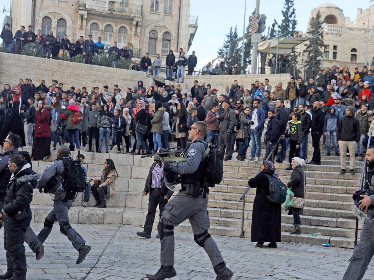 وسط رفض عالمي لإعلان الرئيس دونالد ترامب القدس عاصمة لإسرائيل، عمّ الإضراب الشامل الأراضي الفلسطينية المحتلة، واندلعت مواجهات مع الجيش الإسرائيلي في الضفة الغربية احتجاجاً على القرار، وسط توقعات بأن تندلع اليوم تظاهرات عربية وإسلامية بعد صلاة الجمعة.