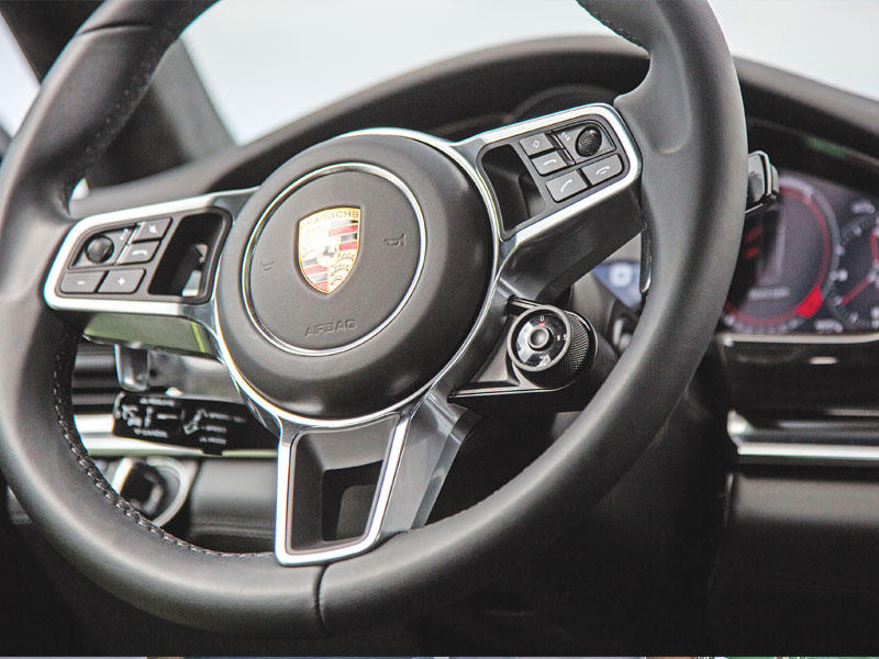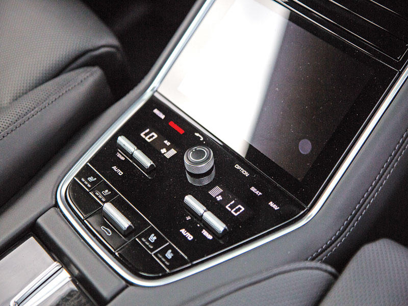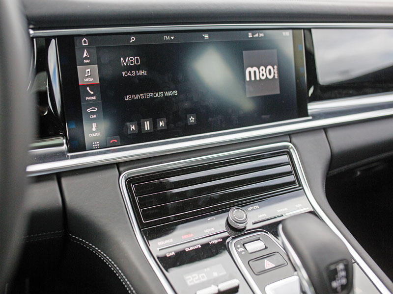تنتقل شاشة "نظام بورشه لإدارة الاتصالات" المتطورة وعالية الدقة بسلاسة إلى مفهوم السطح الأسود للكونسول الوسطي، الذي يتضمن مقبض تعشيق لعلبة تروس PDK يعمل بأسلوب إلكتروني (غير ميكانيكي). في السياق، يتيح لوح تحكم في الكونسول الوسطي بمظهر زجاجي عالي الجودة ومفاتيح تحكم مُستشعرة للّمس، التحكم بعدد من وظائف السيارة ونظام التحكم بالمناخ بديهياً. حتى شفرات فتحة التهوئة الوسطية يمكن تعديلها كهربائياً بواسطة وظيفة مِزلاق حسّاسة. وبالتناغم مع نظام اختياري أوتوماتيكي للتحكم بالمناخ رباعي المناطق ومقعدين فرديين مريحين، يحظى ركاب المقعد الخلفي بشاشة عالية الدقة تعمل باللمس قياس 7 بوصات للتحكم بمكيف الهواء ووظائف الترفيه والمعلومات. وفي حال اعتماد إعداد خلفي قياسي للمقاعد 2+1، يستعاض عن مفهوم التحكم سابق الذكر بلوح تحكم يقع أمام المقعد الخلفي الوسطي للتحكم بمكيّف الهواء رباعي المناطق.أوّل عاكس هواء