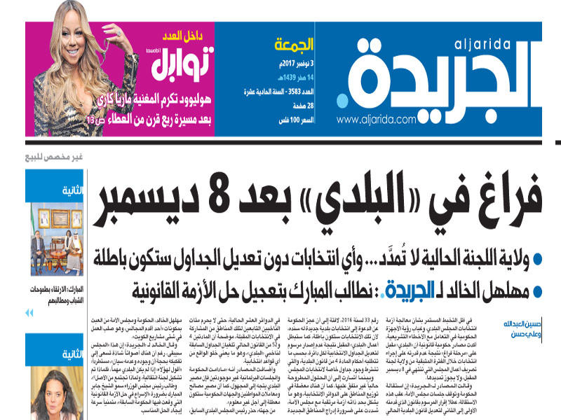 بعد تحذيرات عدة أطلقتها «الجريدة» بشأن دخول المجلس البلدي في فراغ بعد 8 الجاري، لانتهاء فترة الشهرين التي حددها القانون 33 لسنة 2016 للجنة تصريف أعمال المجلس، وتعرض أي قرار تصدره بعد هذه الفترة للبطلان، كشفت مصادر مطلعة أن الحكومة غير راغبة في تمديد عمل هذه اللجنة خشية الطعن على أعمالها، باعتبارها ملغاة، نظراً لقصر القانون عملها على شهرين فقط بعد حل المجلس، مع عدم سماحه بتجديد عملها. وقالت المصادر،