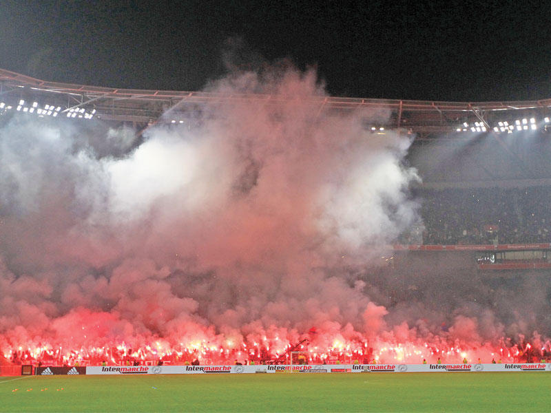 صورة الأسبوع : جماهير نادي ليون الفرنسي اشعلت المدرجات خلال مواجهة مرسيليا الأحد الماضي في الدوري الفرنسي لكرة القدم وفي نفس الوقت وعلى الجانب الآخر من المدرجات احتفلت رابطة «باد غونز» المناصرة لليون ايضاً بمرور 30 عاماً على تأسيسها