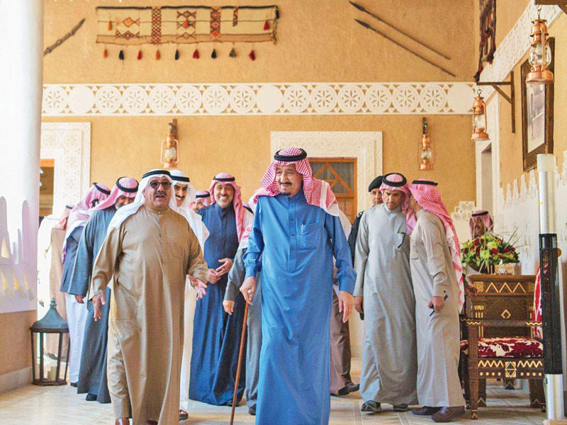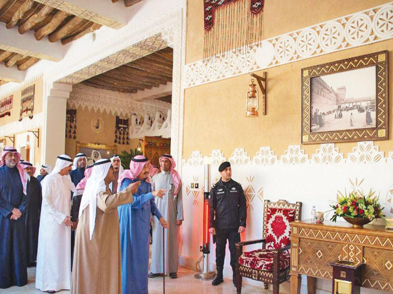جانب من جولة ملك السعودية وناصر الصباح في منطقة قصر الدرعية التاريخية