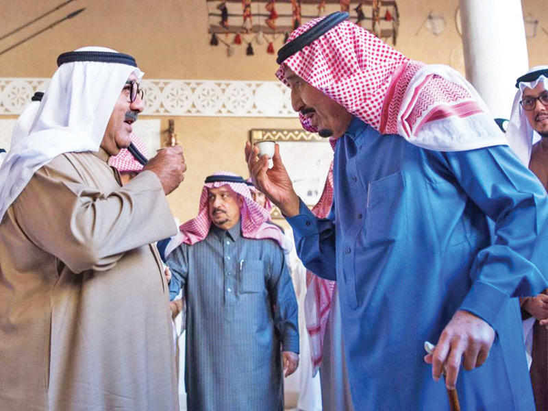 خادم الحرمين خلال مباحثاته مع ناصر الصباح