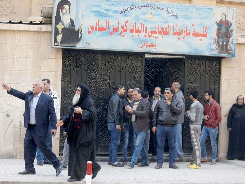 هاجم إرهابيون كنيسة مار مينا في حلوان، ما أسفر عن مقتل 9، وكان عدد القتلى والمصابين مرشحا للزيادة لولا يقظة قوات الأمن، التي نجحت في منع دخول إرهابي إلى باحة الكنيسة وتفجير نفسه.وأعلنت وزارة الداخلية، في بيان، أن «الأجهزة الأمنية المعينة لتأمين كنيسة مار مينا في حلوان تصدت لمجهول يستقل دراجة بخارية خلال محاولته اجتياز النطاق الأمني الخارجي للكنيسة، ونجحت في القبض عليه عقب إصابته، وضبط معه سلاح آلي وعبوة متفجرة، قبل محاولة إلقائها على الكنيسة، ما أسفر عن مقتل أمين شرطة و8 مواطنين، وإصابة 4 آخرين بينهم أمين شرطة، تم نقلهم إلى المستشفى لتلقي العلاج، كما أبطل خبراء المفرقعات مفعول عبوتين ناسفتين بجوار كنيسة مار مينا».وأكد مصدر رفيع المستوى، لـ«الجريدة»، أن «الهجوم نفذه اثنان من العناصر الإرهابية، أطلقا النار بشكل عشوائي على المواطنين قرب الكنيسة، قبل أن يتم القبض على المتهم الرئيسي وفرار مساعده».