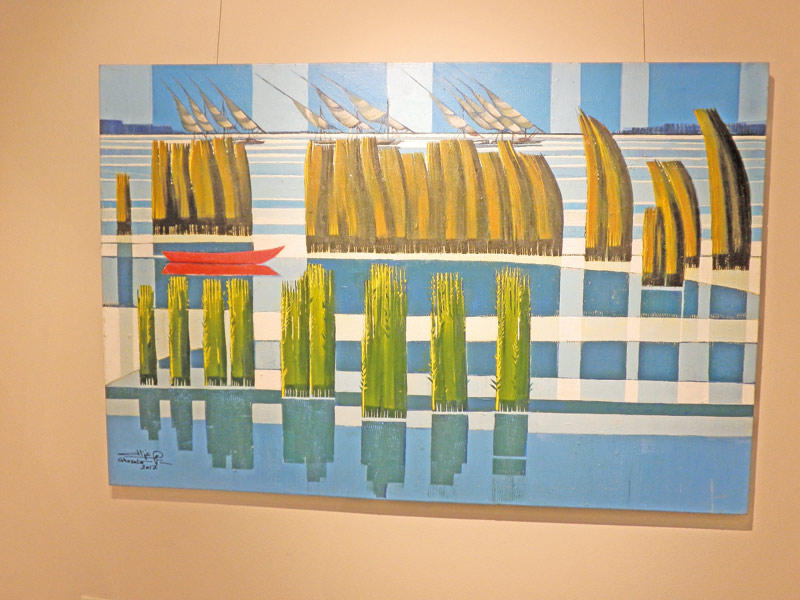 تعاملت بآلية خاصة مع المنظر الطبيعي تجلّى أثرها في معرضك الأخير «سحر البرلس». ما هي أبعاد هذا التعامل؟بحيرة البرلس فضاء ساحر ومدهش جذبني. كانت بالنسبة إليّ مفاجأة بصرية، ففكرت في ترجمة ذلك في عملي، وقررت اصطحاب «اسكتشاتي» وألواني وزيارة هذه البقعة الساحرة والرسم استعداداً لتقديم معرض عن البرلس. أردت أن أعايش المكان، وفعلاً كان وقتاً للاستمتاع والسياحة الذهنية والبصرية، إذا جاز التعبير. وشكّل ذلك حنيناً إلى بحيرة المنزلة التي تربيت عليها في الستينيات، إذ كانت تقع بالقرب من بيتي. فبحيرة البرلس تفاعلت في داخلي لأن لدي هماً شخصياً استدعى حنيني إلى بحيرة المنزلة. كانت المراكب تخرج إزاء البيوت، وهو أمر بالنسبة إلى الطفل مدهش، كذلك أن يرى الأسماك في المياه ويصطادها. كان التعداد السكاني آنذاك قليلاً، ولم تكن ظهرت بعد المباني الأسمنتية خارج المدن. عاصرت آخر ضوء جمالي في مصر قبل أن يخمد في السبعينيات.