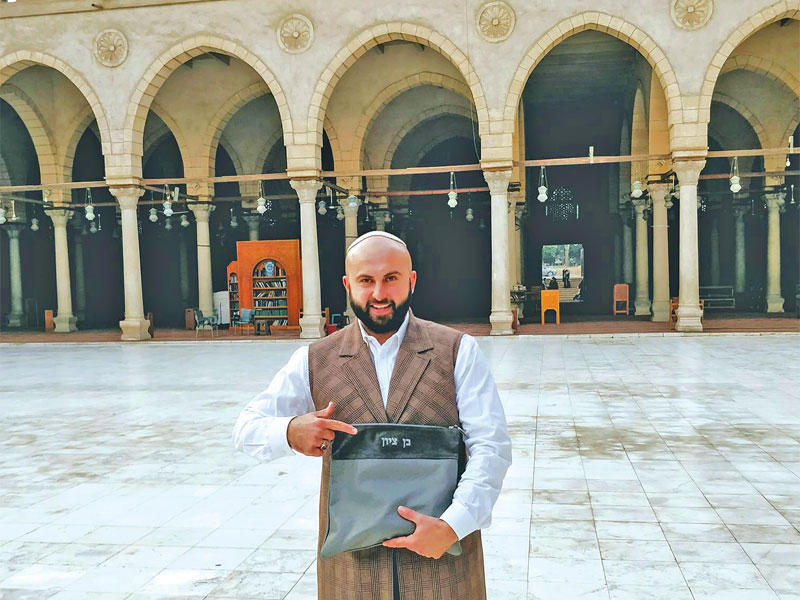 وفي الصورة الجديدة التي نشرها قبل أيام على "فيسبوك"، حاملاً فيها حقيبته المنقوش عليها الكلمة المستفزة ذاتها "بن صهيون"، كتب المدون الإسرائيلي انه في مسجد عمرو بن العاص، الذي بُني خلال عامي 641 و642، مشيراً إلى أنه أول مسجد يبنى في مصر وإفريقيا، وأضاف أن بن العاص قائد عربي، حرر مصر من الوجود الروماني سنة 641.ولم يكتف "بن تزيون" بهذه الصورة، بل نشر مقطع فيديو من داخل معبد "بن عزرا" اليهودي، الموجود في منطقة الفسطاط بضاحية مصر القديمة، وفيديو آخر في منطقة الأهرامات بمحافظة الجيزة، وهو يمتطي جواداً، ومرتدياً عباءة وفي يده سوط.وطالب النائب أحمد طنطاوي السلطات المصرية بمنع التأشيرات عن الإسرائيليين، خصوصا بعد الكشف عن أطماع الصهاينة في إطار ما يسمى بصفقة القرن، مشدداً على ضرورة معاقبة من سهل لهذا المدون الإسرائيلي الدخول إلى المسجد. وأضاف: "هذه جريمة تطبيع لا تغتفر"، بينما قال أمين سر لجنة العلاقات الخارجية في البرلمان، طارق الخولي، إن "تصرف المدون الإسرائيلي نوع من الحرب النفسية"، مضيفاً لـ"الجريدة": "هذه التصرفات تأتي رداً على ما حدث أخيراً من جانب الدول العربية تجاه قرار الرئيس الأميركي دونالد ترامب بنقل سفارة بلاده إلى القدس".