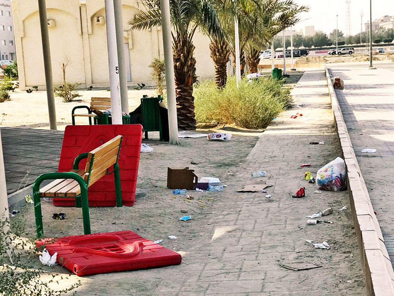 "لا رقابة... لا مبالاة... لا صيانة" هذا هو حال حديقة صباح السالم الجديدة التي لم يمض على افتتاحها أكثر من عام، فقد أحاطت بها النفايات من كل جهة، وتنتشر فيها روائح المجاري جراء المناهيل المفتوحة، التي تعرض المرتادين وأطفالهم للخطر، إضافة إلى الألعاب و"المراجيح" التي وقع عليها ضرر كبير، وأصبحت خطيرة على الأطفال وهي بحالتها دون صيانة.هذه الحديقة ليست سوى ضحية أخرى في هذه المنطقة المكتظة بالسكان فمنذ 2010، والحديقة العامة الكبيرة مغلقة للصيانة بعد أن تم افتتاحها منذ بضعة أشهر فقط بعد اكتشاف انخفاض في التربة وعيوب في المباني والمرافق، الامر الذي أدخل الهيئة العامة لشؤون الزراعة والثروة السمكية في دوامة التقاضي مع المقاول المنفذ للحديقة، والذي كان قد فاز بـ24 عقدا مع الهيئة.